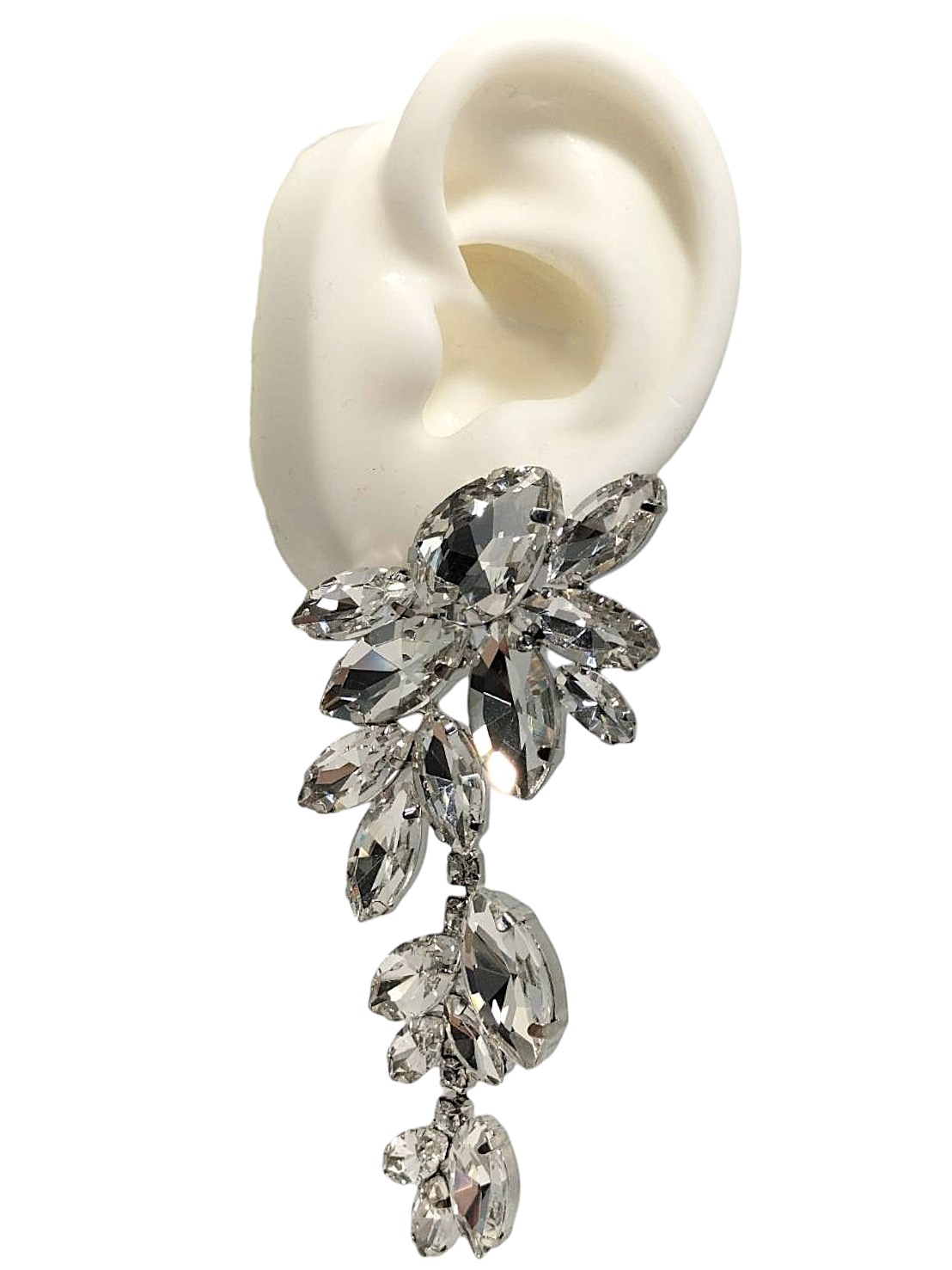 アイテム:ビジューデザインピアス 素材:メタル・アクリルストーン カラー:シルバー・クリスタル 全長:約8㎝