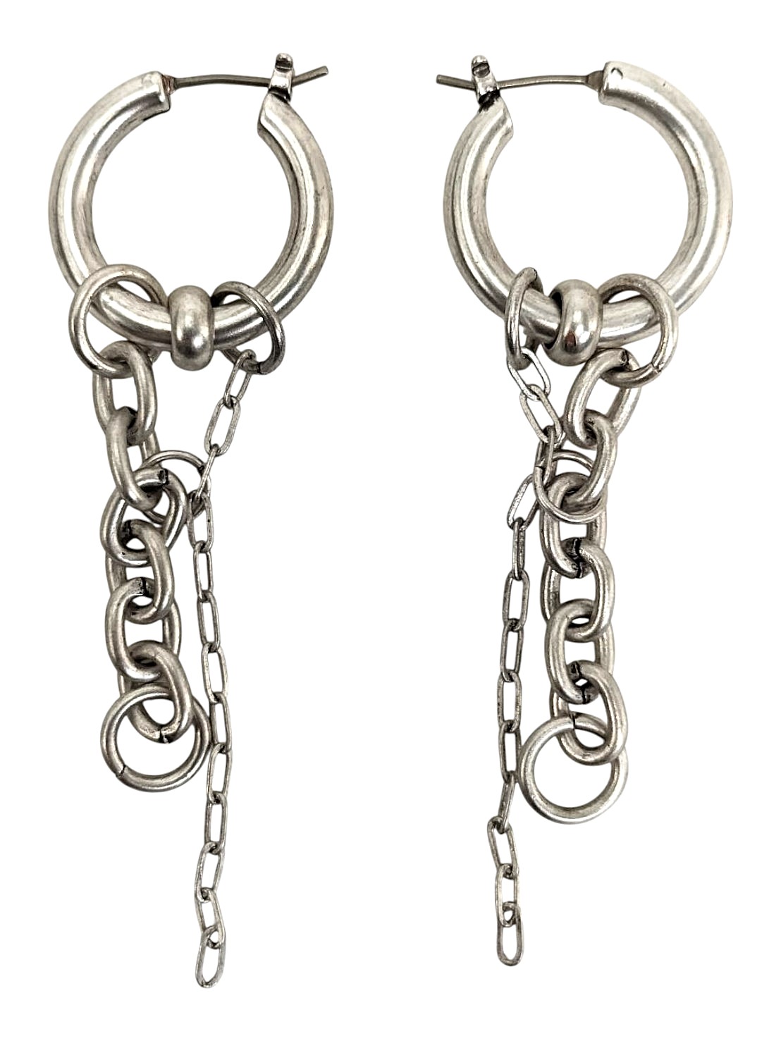 アイテム:フリンジチェーンループピアス 素材:メタル カラー:マットシルバー 全長:約6.5㎝