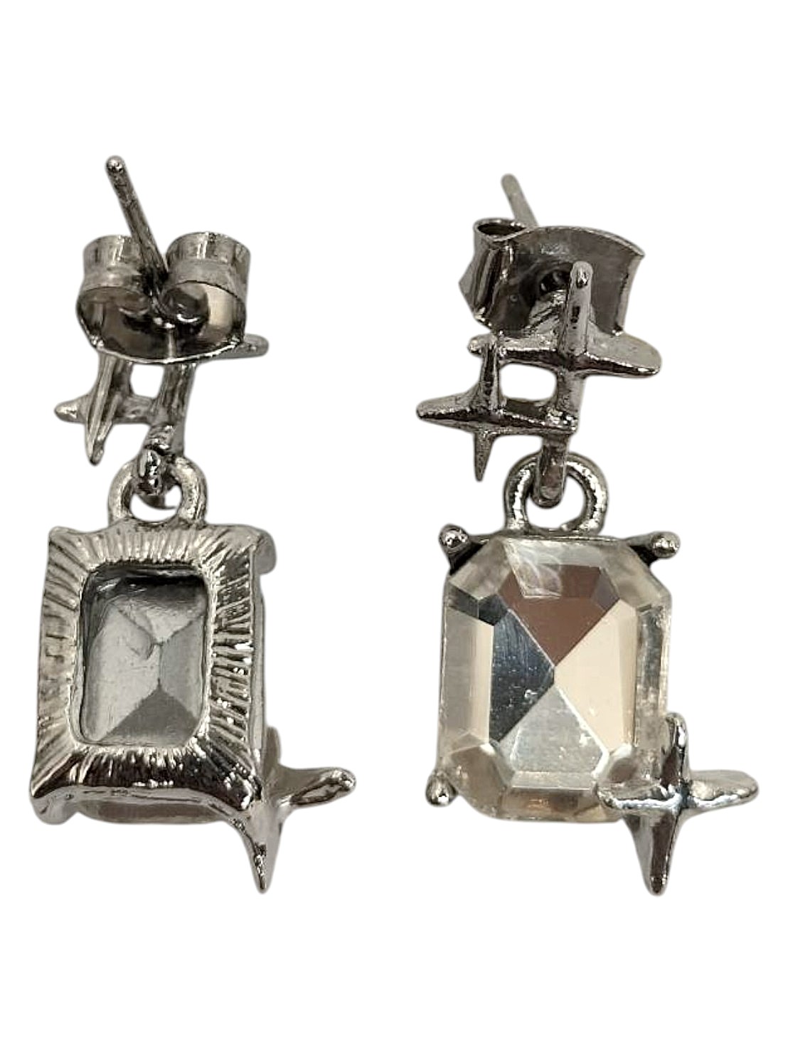 メモ | アイテム:スクエアストーン付きデザインピアス 素材:メタル・ガラス カラー:シルバー・クリスタル |