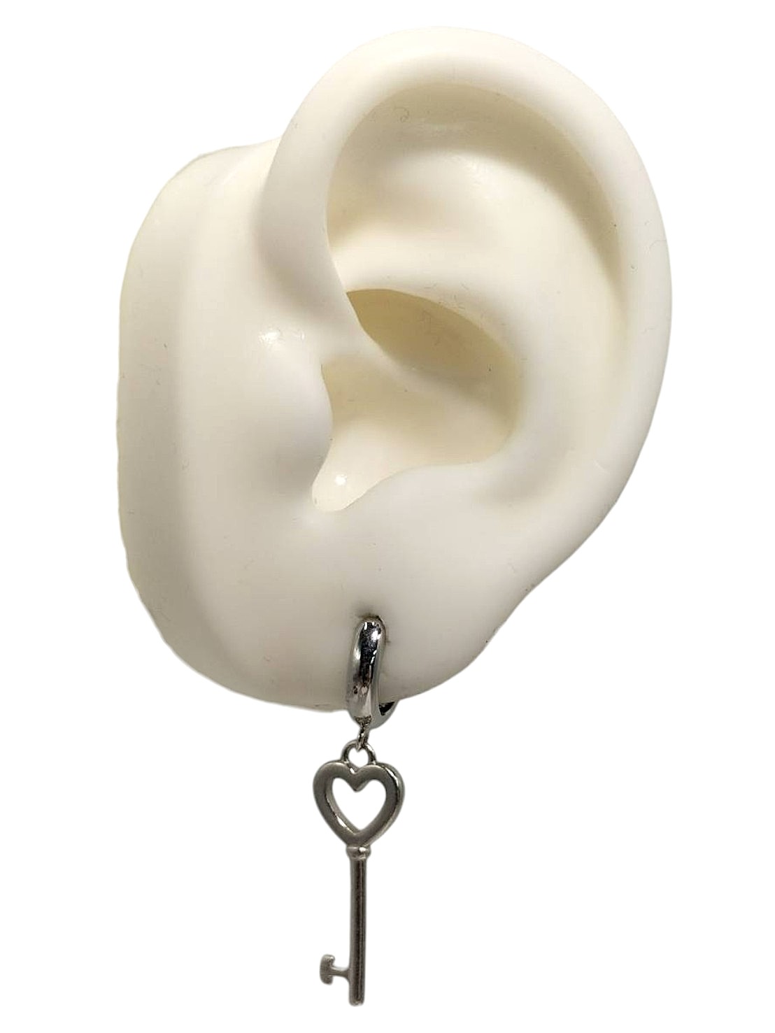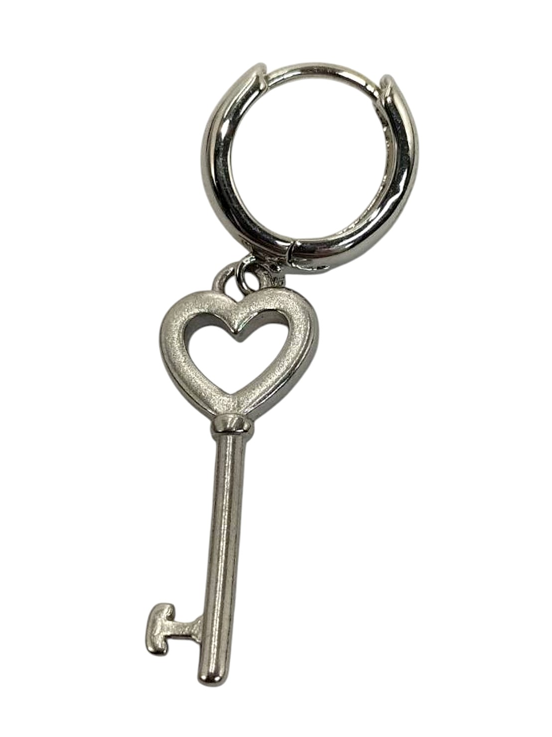 メモ | アイテム:ハート&鍵モチーフ片耳ピアス 素材:メタル カラー:シルバー 全長:約3.6㎝ |