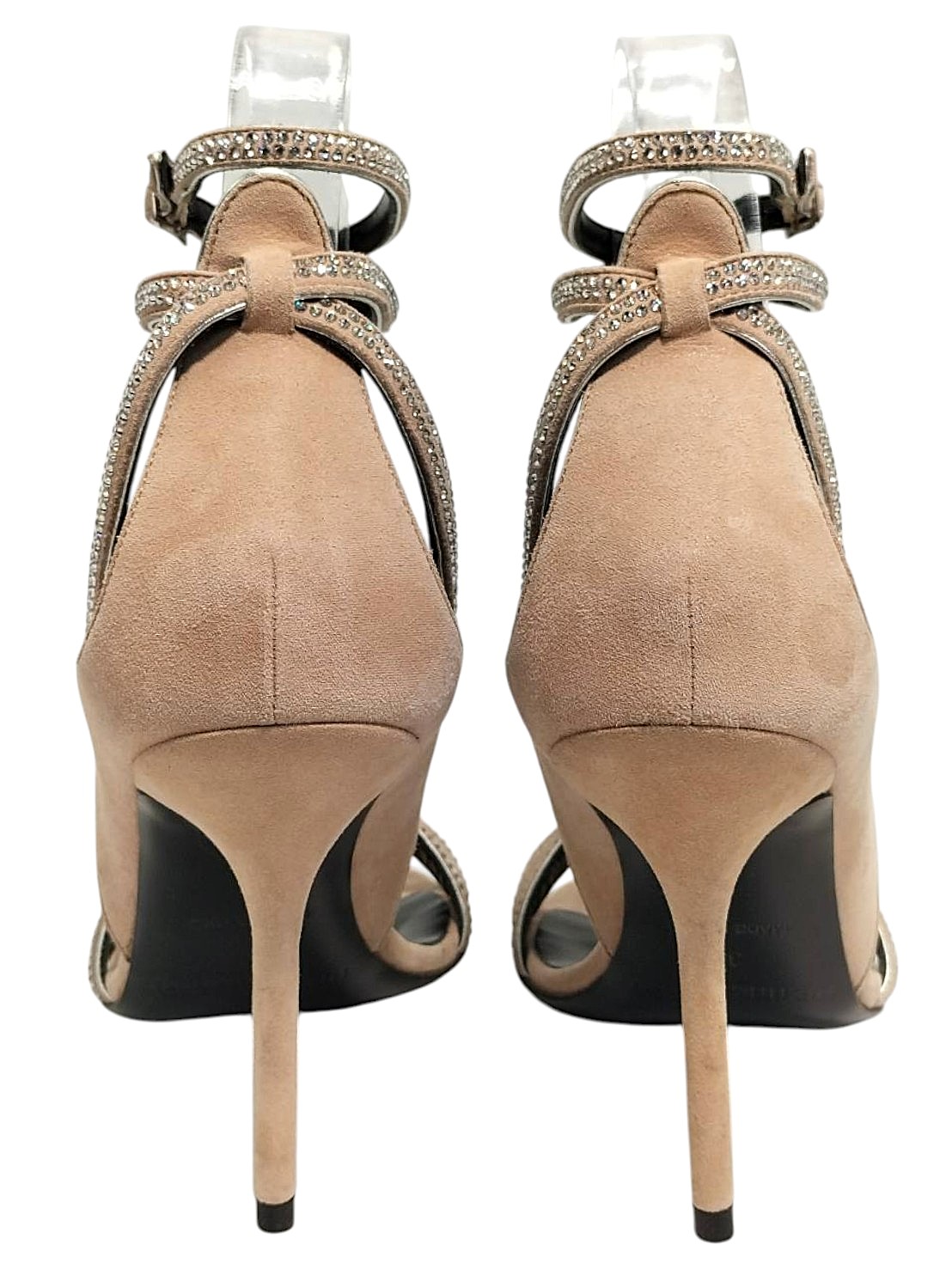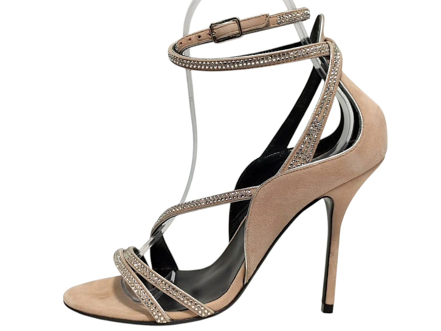 メモ | アイテム:アンクルクロスストラップサンダル 素材:レザー・ガラス ヒール:10.5cm カラー:ピンクベージュ・クリスタル ※金具シルバー |