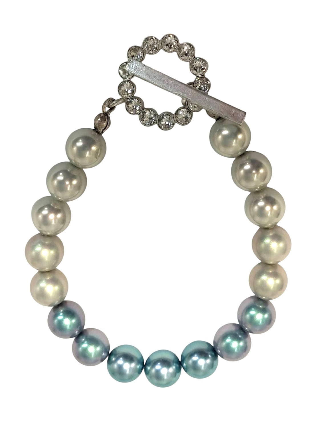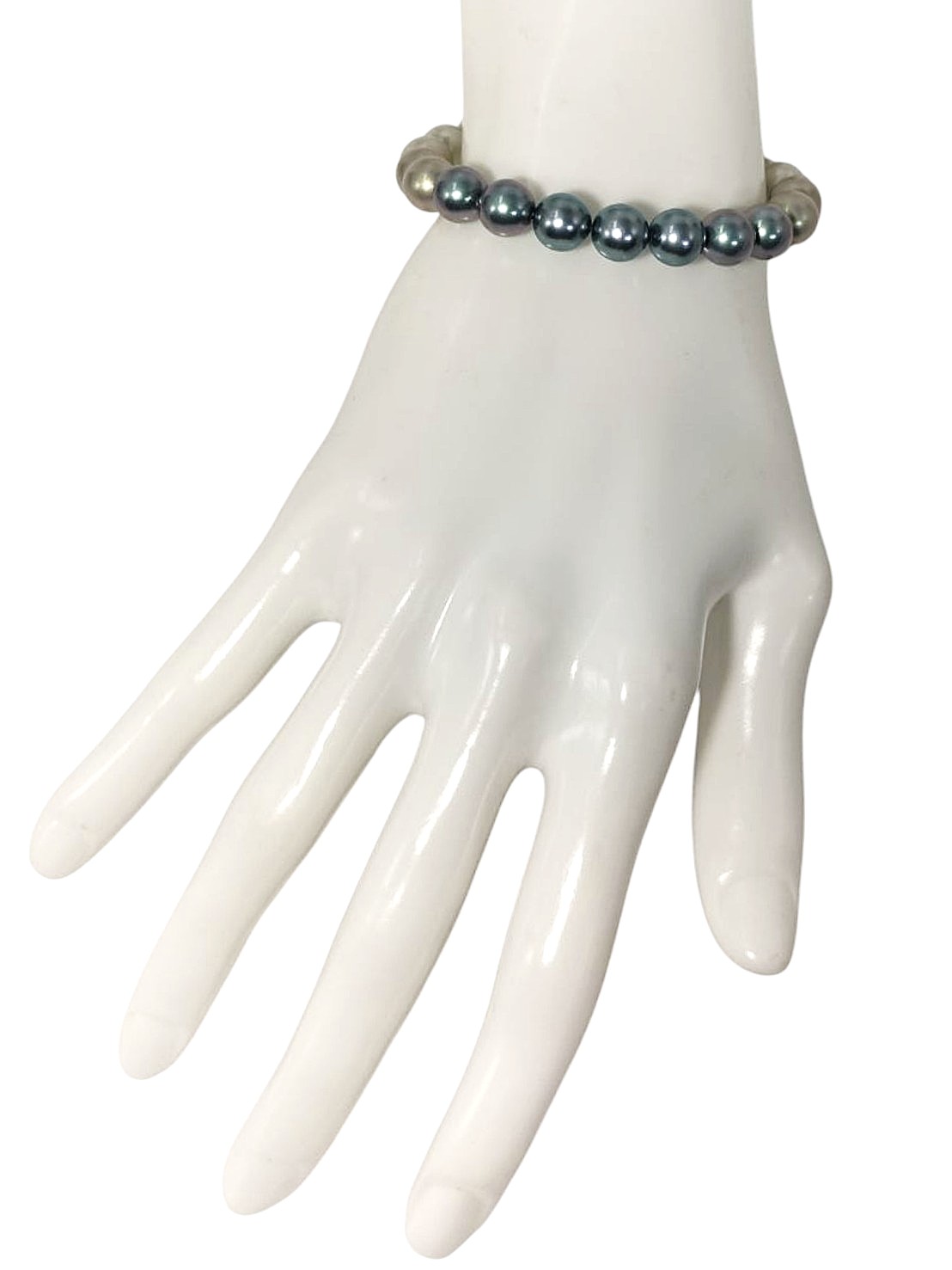 アイテム:パールグラデーションデザインブレスレット 素材:メタル・樹脂パール カラー:マットシルバー・ブルーグラデージョン