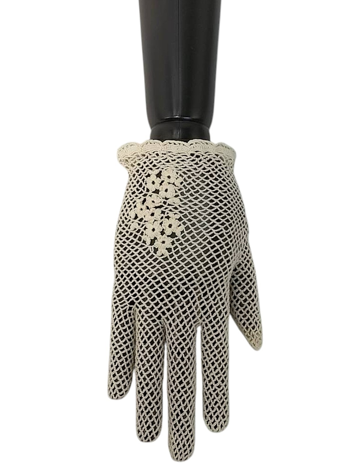 アイテム:レース編みショートグローブ 素材:アクリル・コットン カラー:アイボリー 全長:18㎝