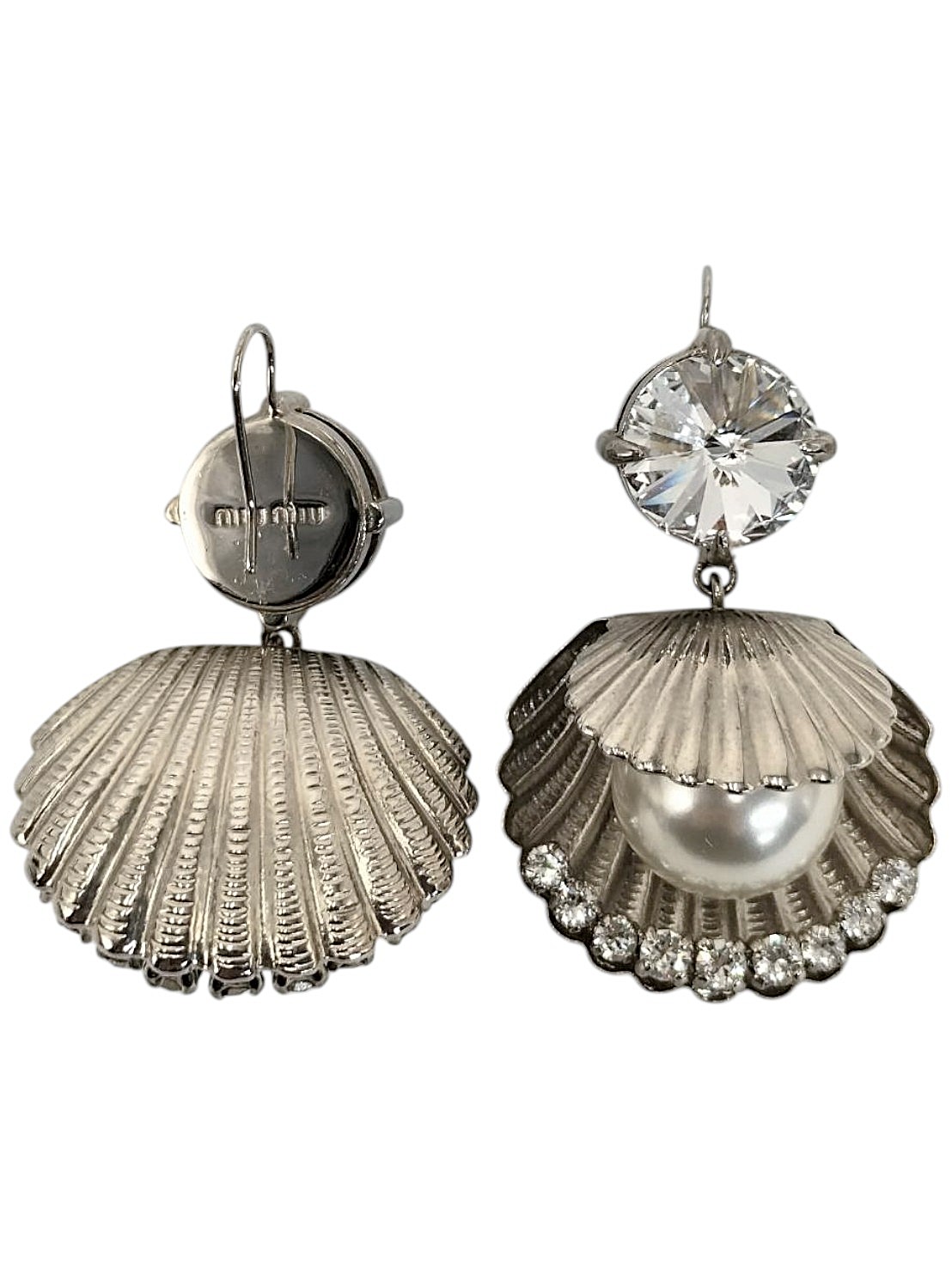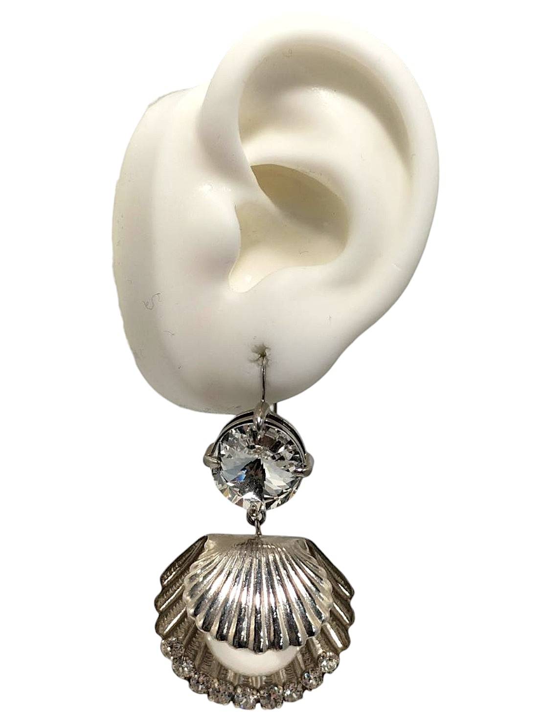 アイテム:パール付きシェルモチーフ ピアス 素材:メタル・樹脂パール 全長:約4.8㎝ カラー:シルバー・キスカパール