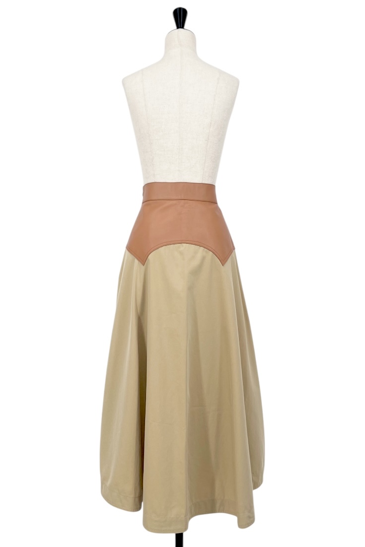素材:コットン、レザー 総丈:約89㎝(前:約72㎝) ウエスト平置き:約31㎝