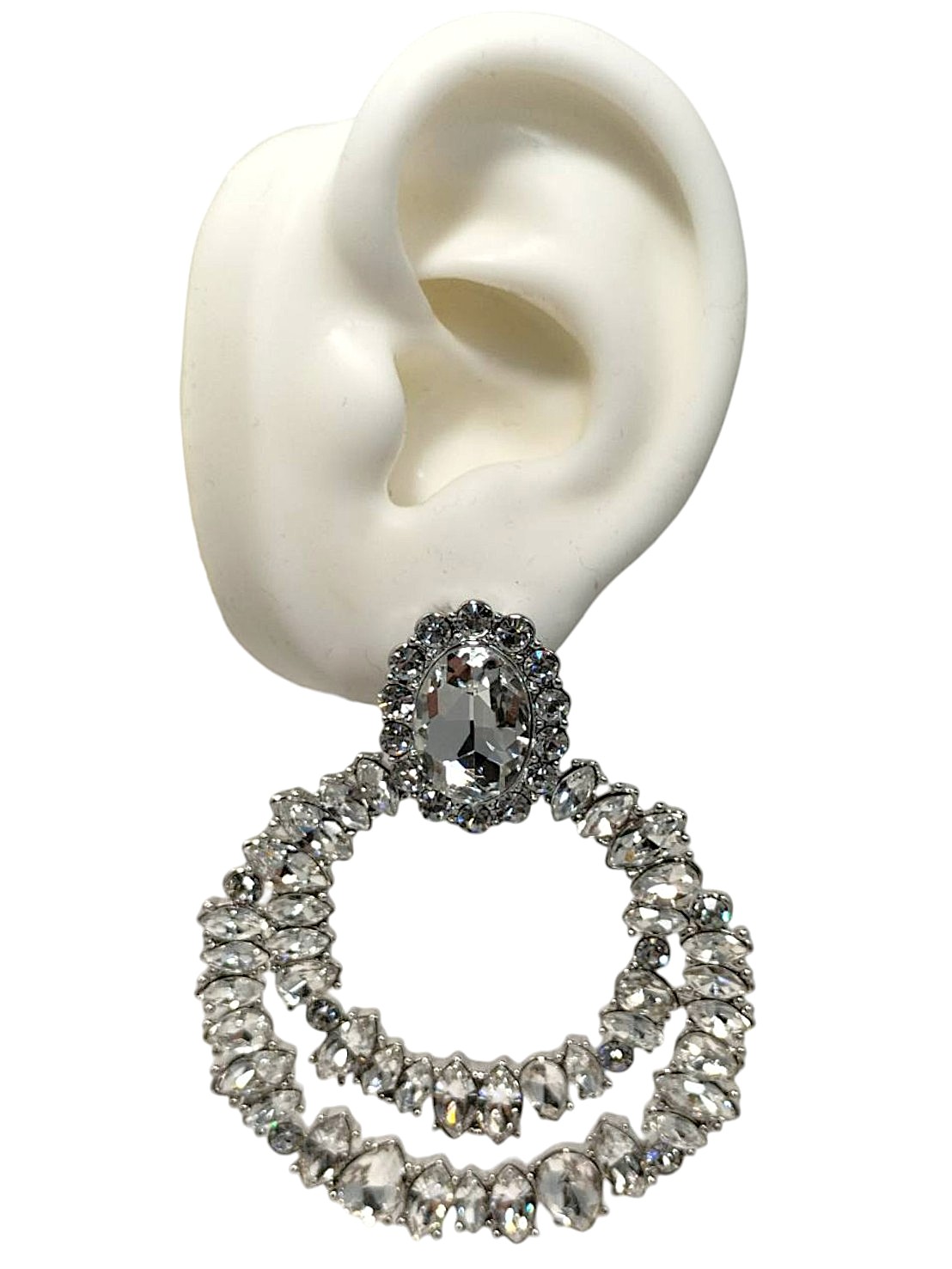 | メモ | アイテム:大振りデザインイヤリング 素材:メタル・ガラス 全長:6㎝ カラー:シルバー・クリスタル |