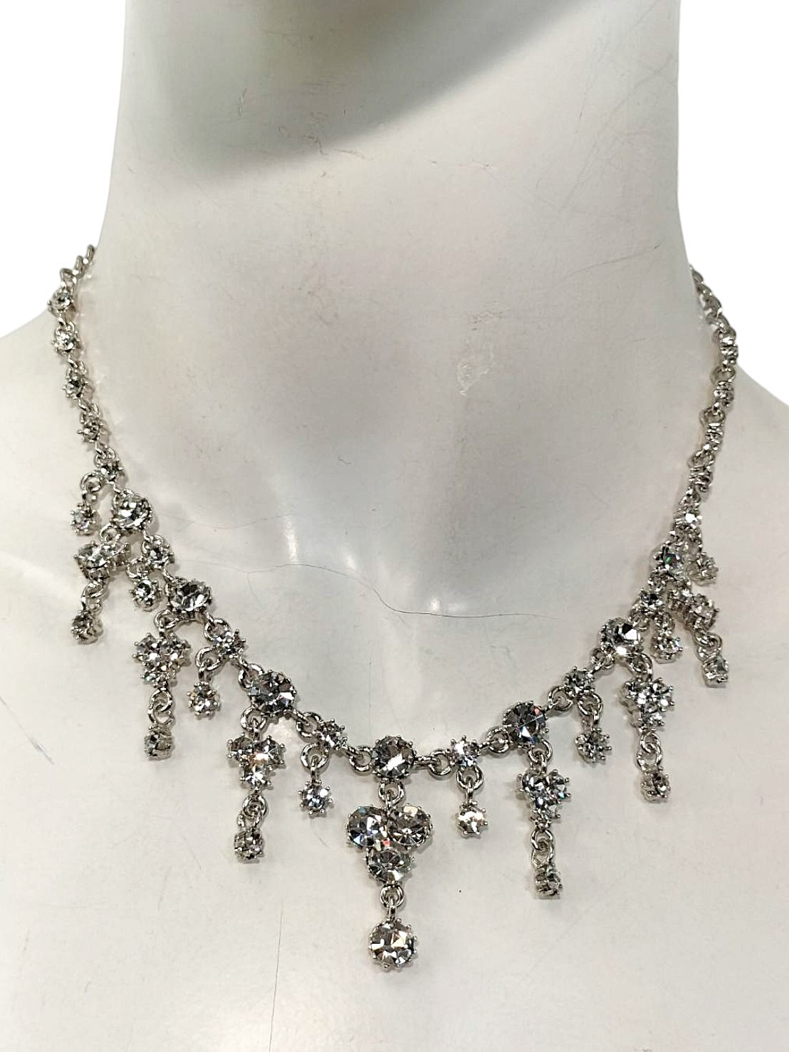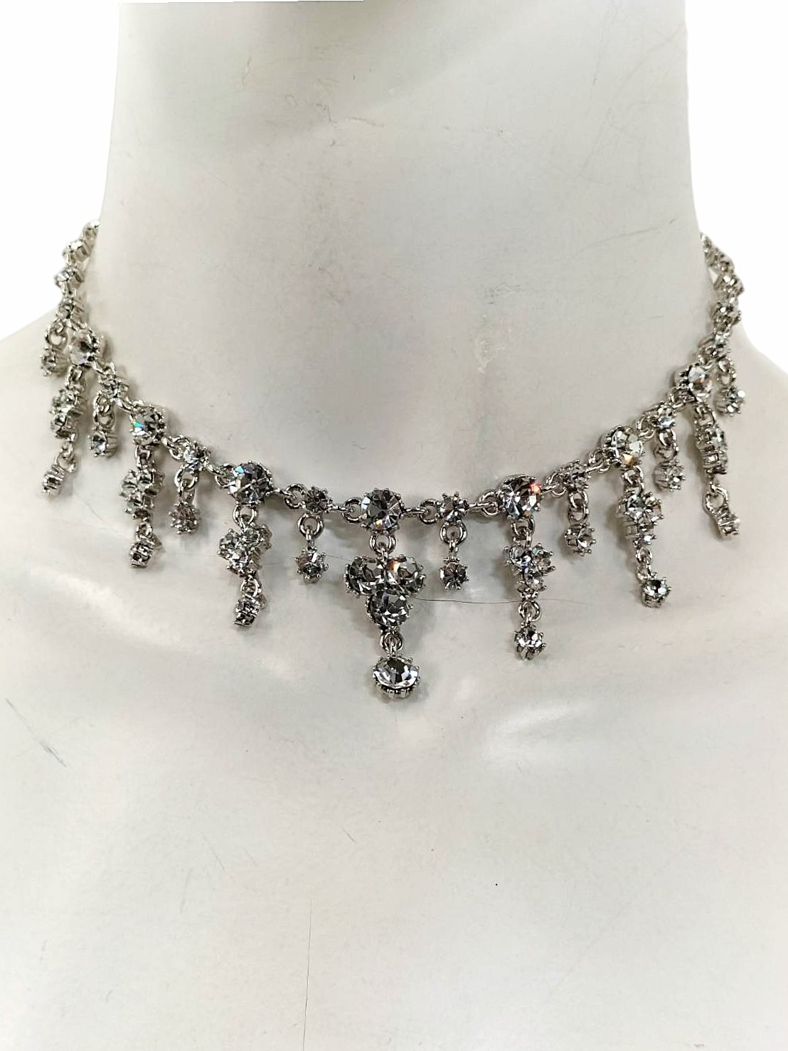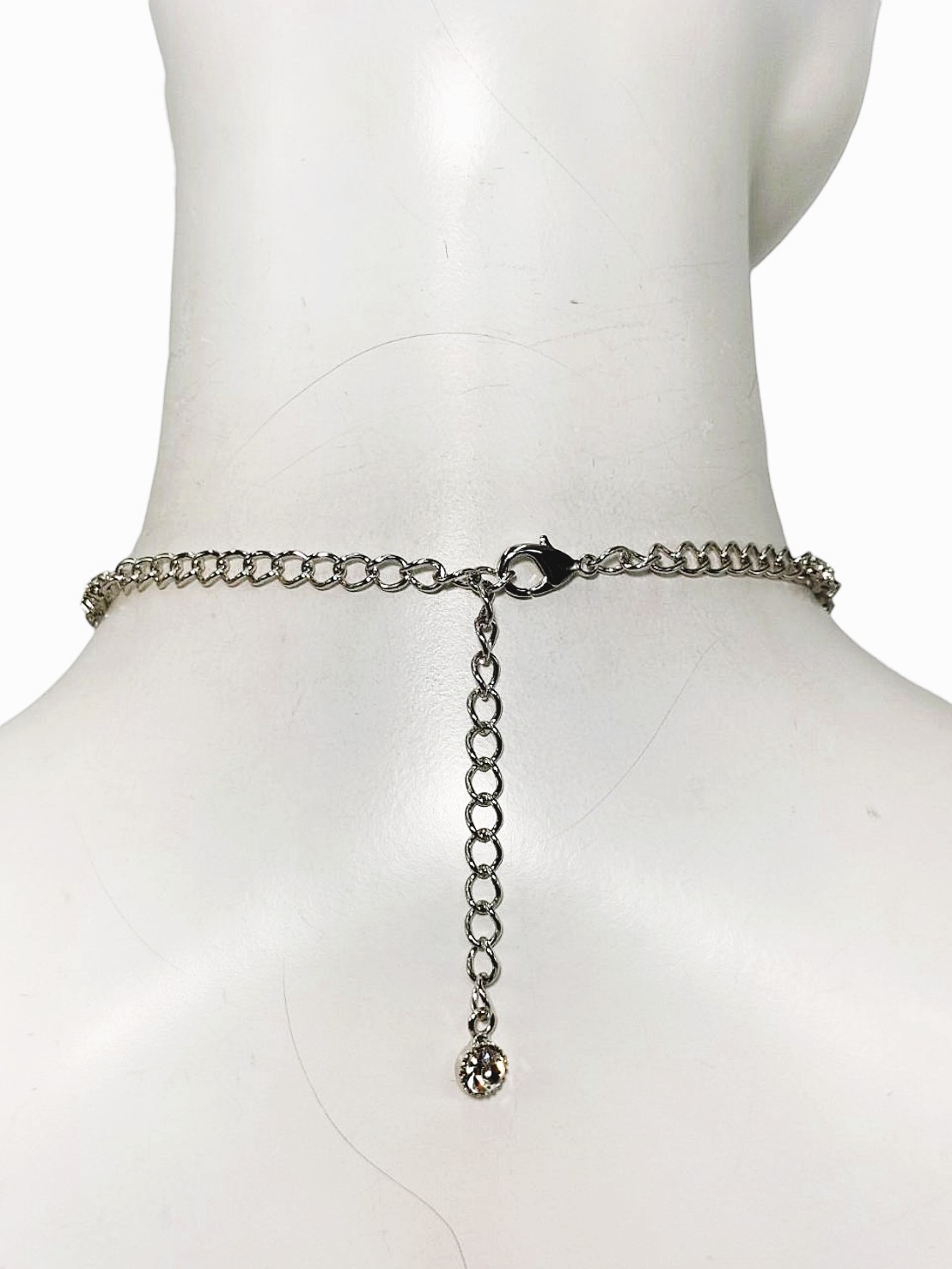アイテム:ビジューデザインネックレス 素材:メタル・ガラス 全長:約42㎝ カラー:シルバー・クリスタル