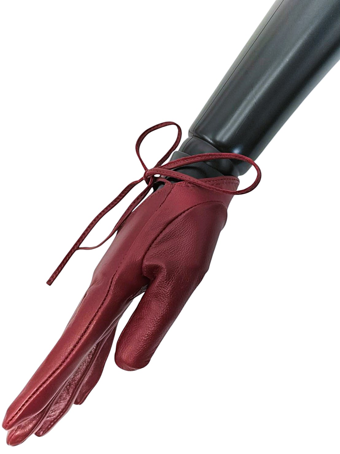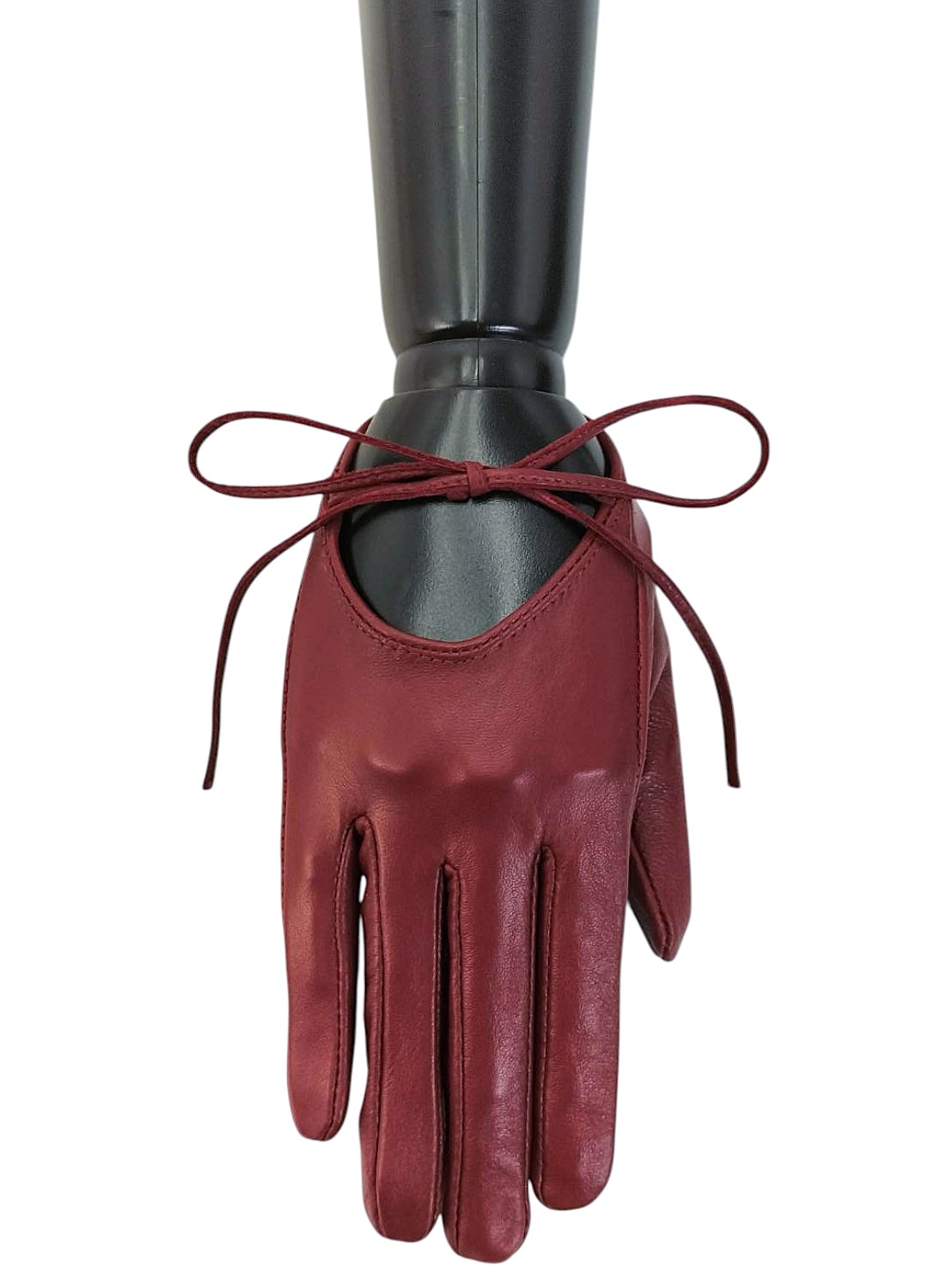 アイテム:レザーリボンデザインショートグローブ 素材:レザー カラー:ボルドー