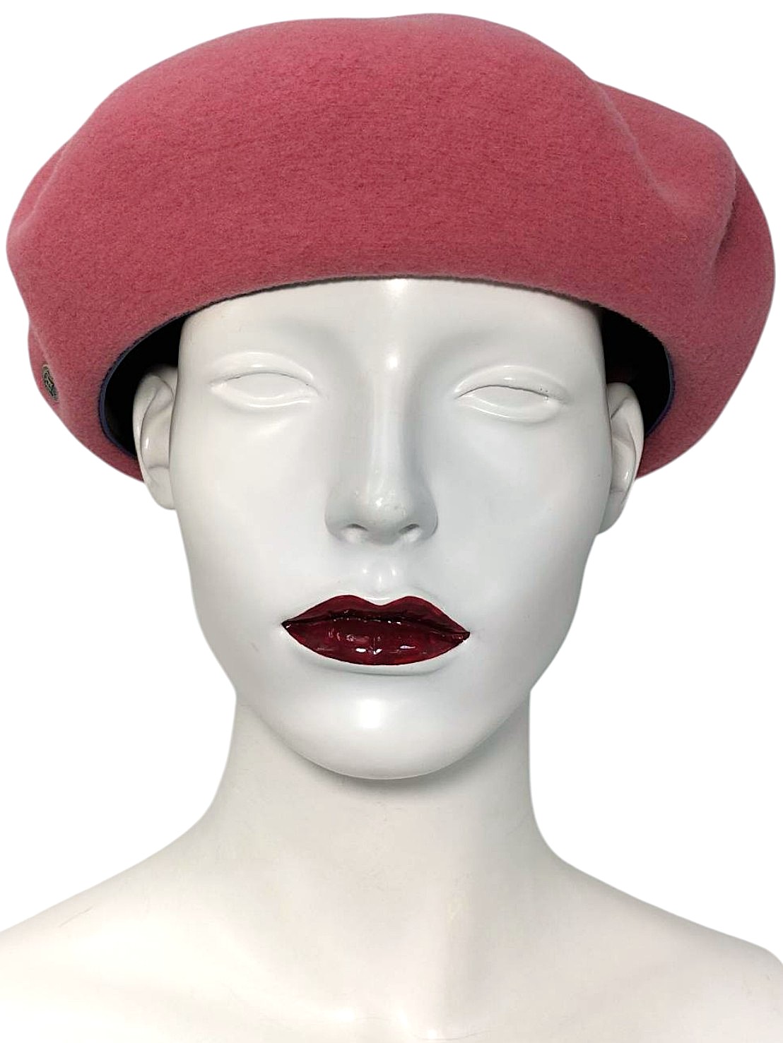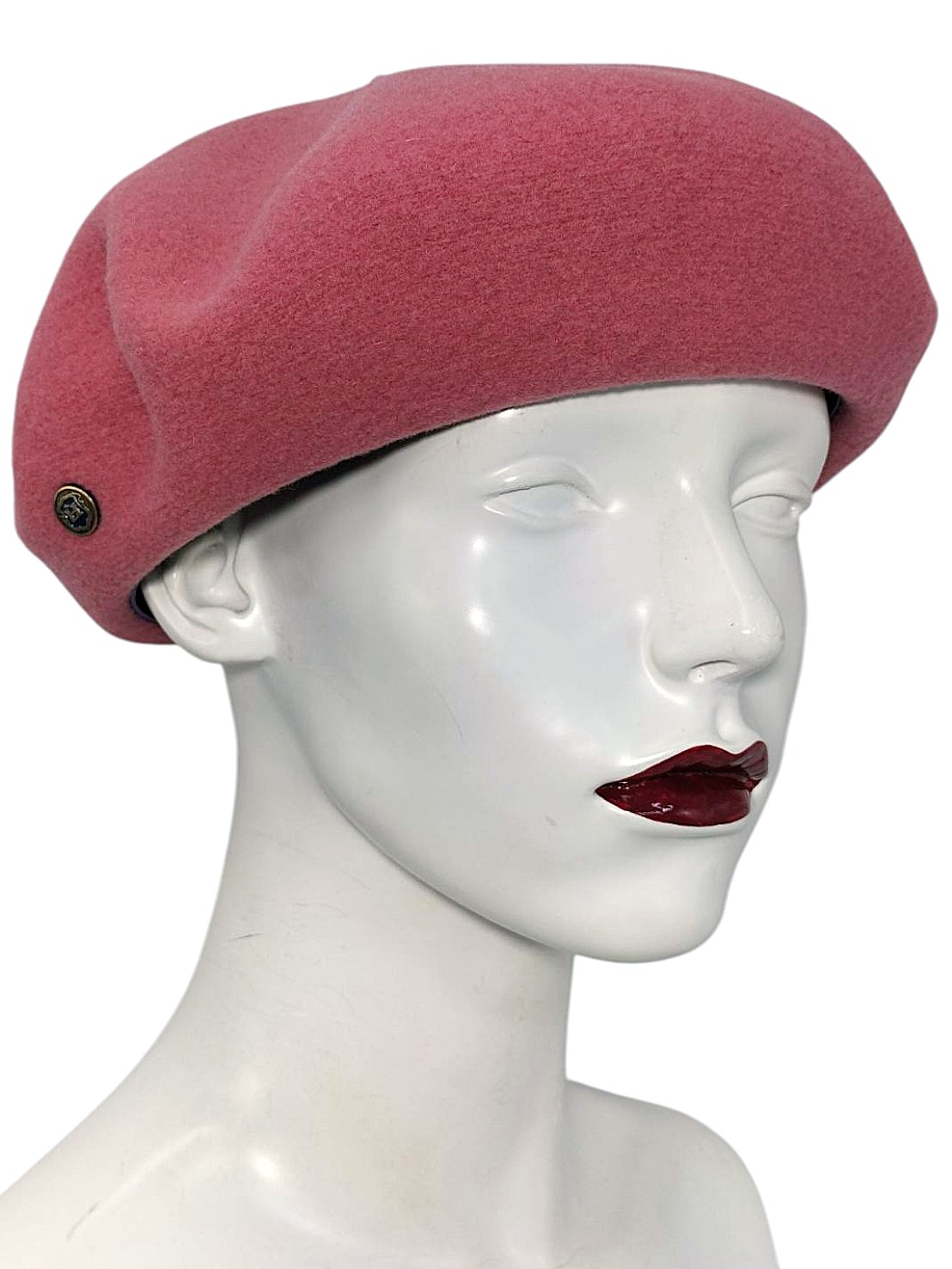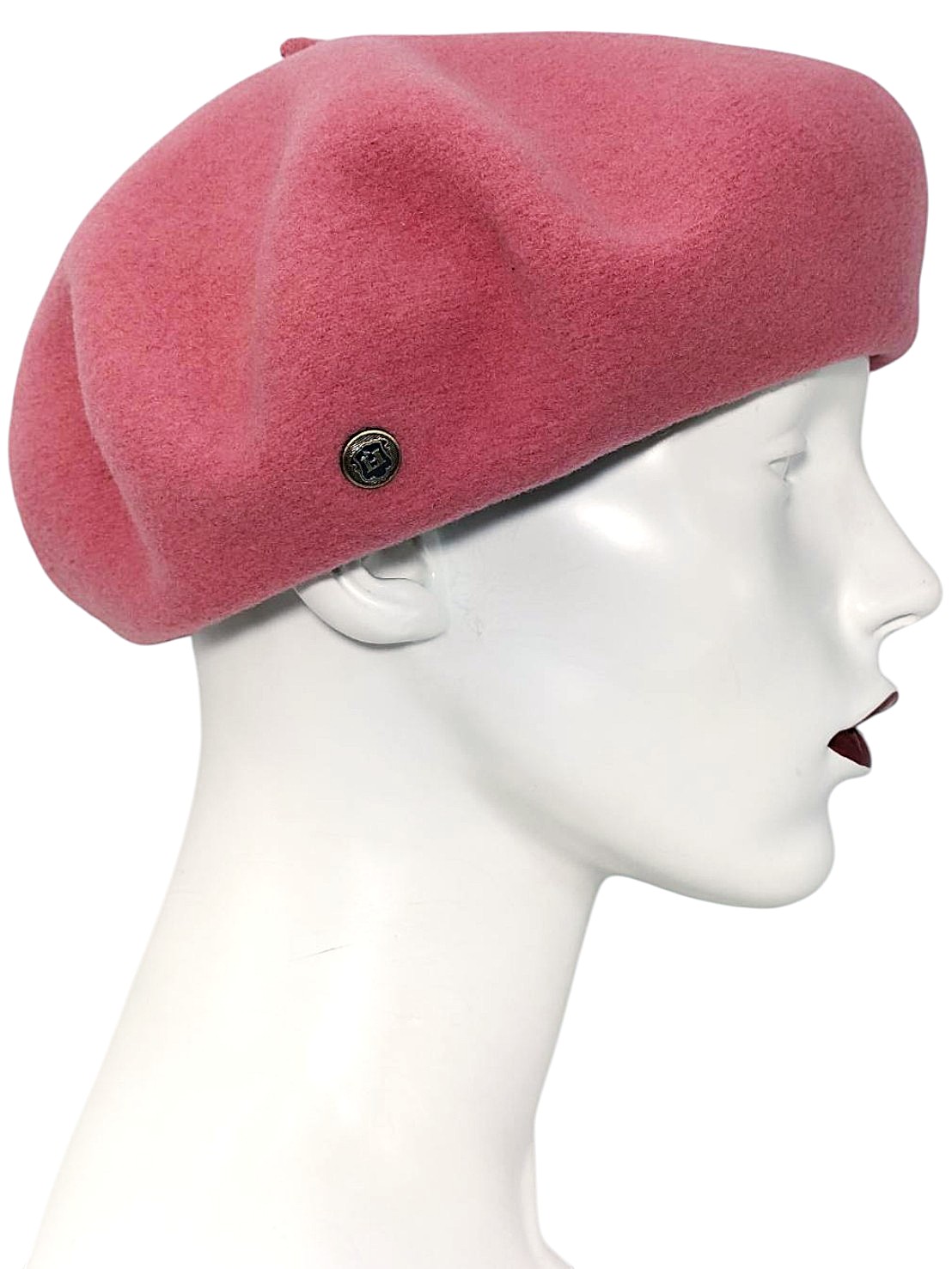 アイテム:ベレー カラー:ブロッサム・濃いピンク 素材:ウール・レザー・メタル