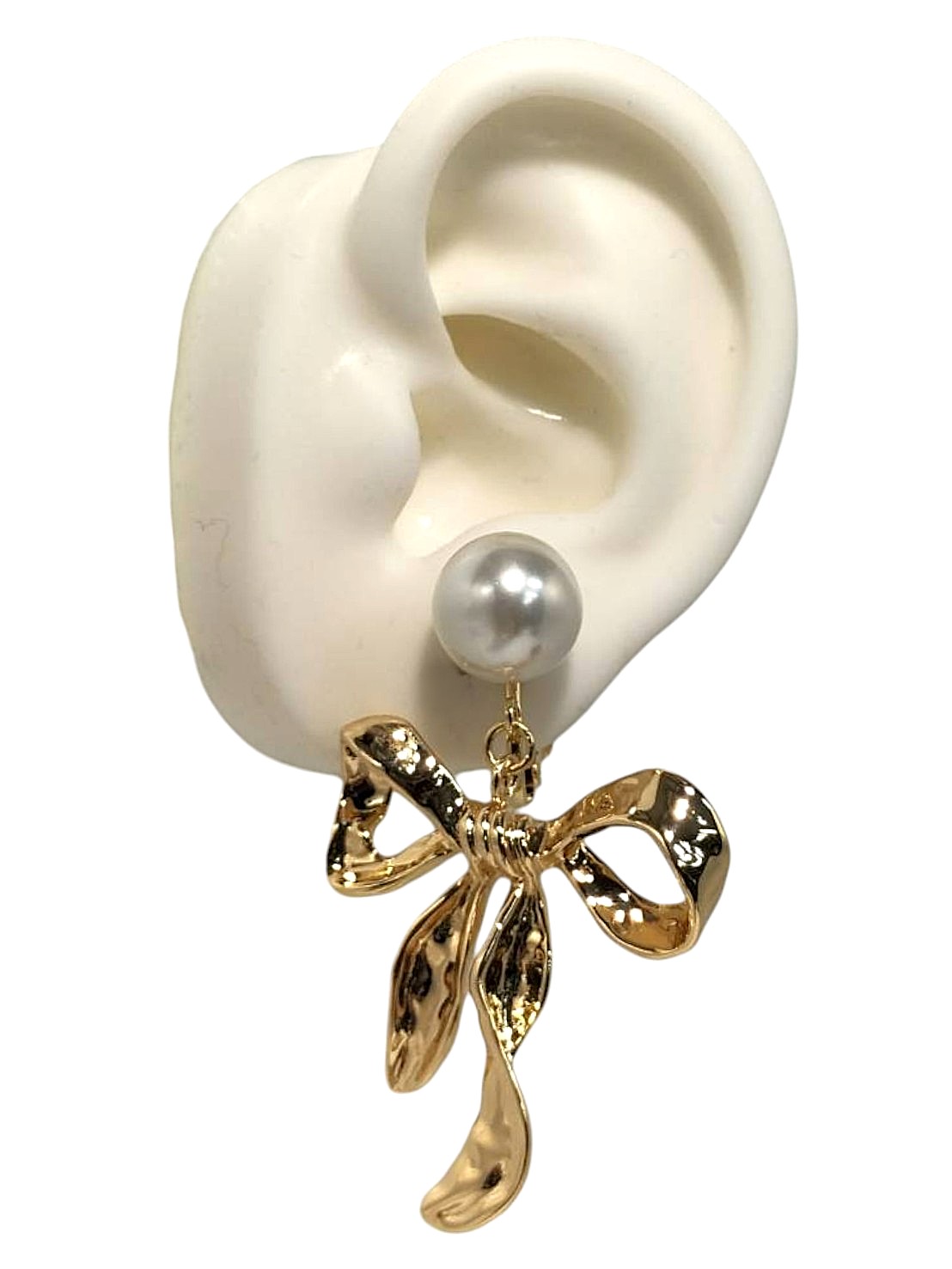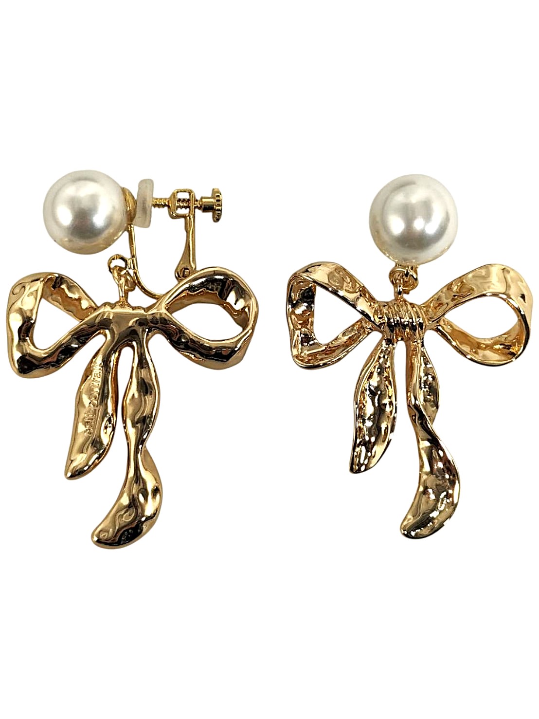 | メモ | アイテム:パール付きメタルリボンデザインイヤリング 素材:メタル・樹脂パール 全長:約5.5㎝ カラー:ゴールド・ホワイトパール |