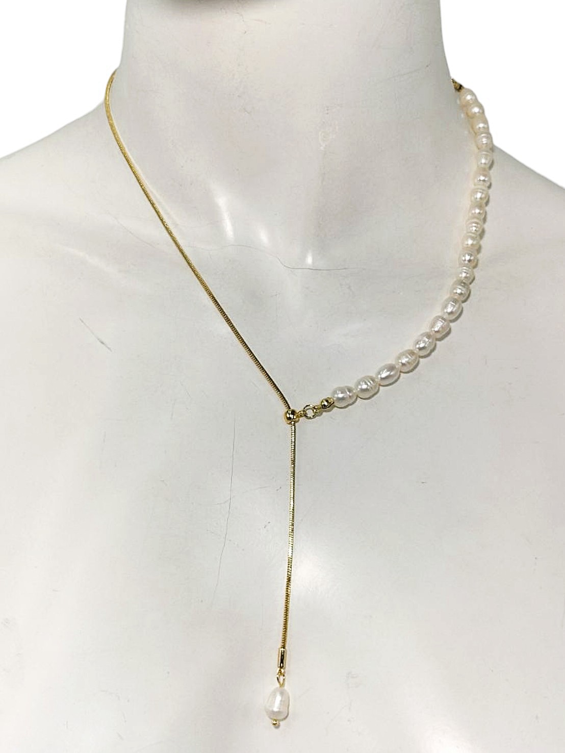 アイテム:スライダー付き淡水パールデザインチョーカー 素材:メタル・淡水パール カラー:ゴールド・ホワイトパール ※AC9999231同型