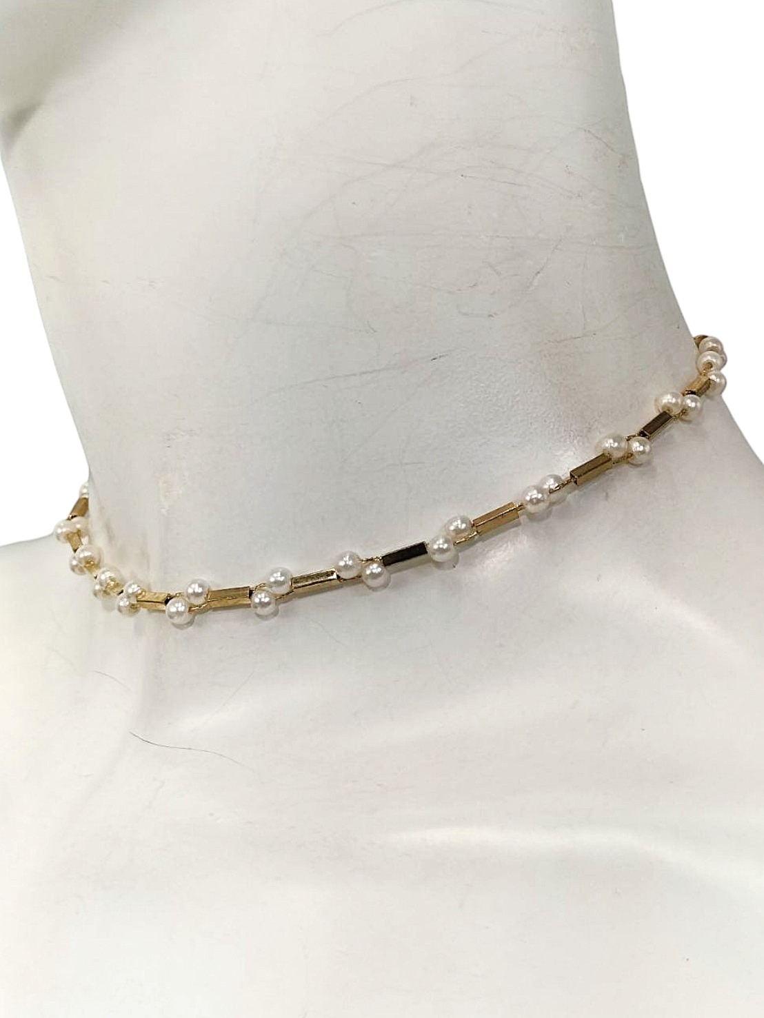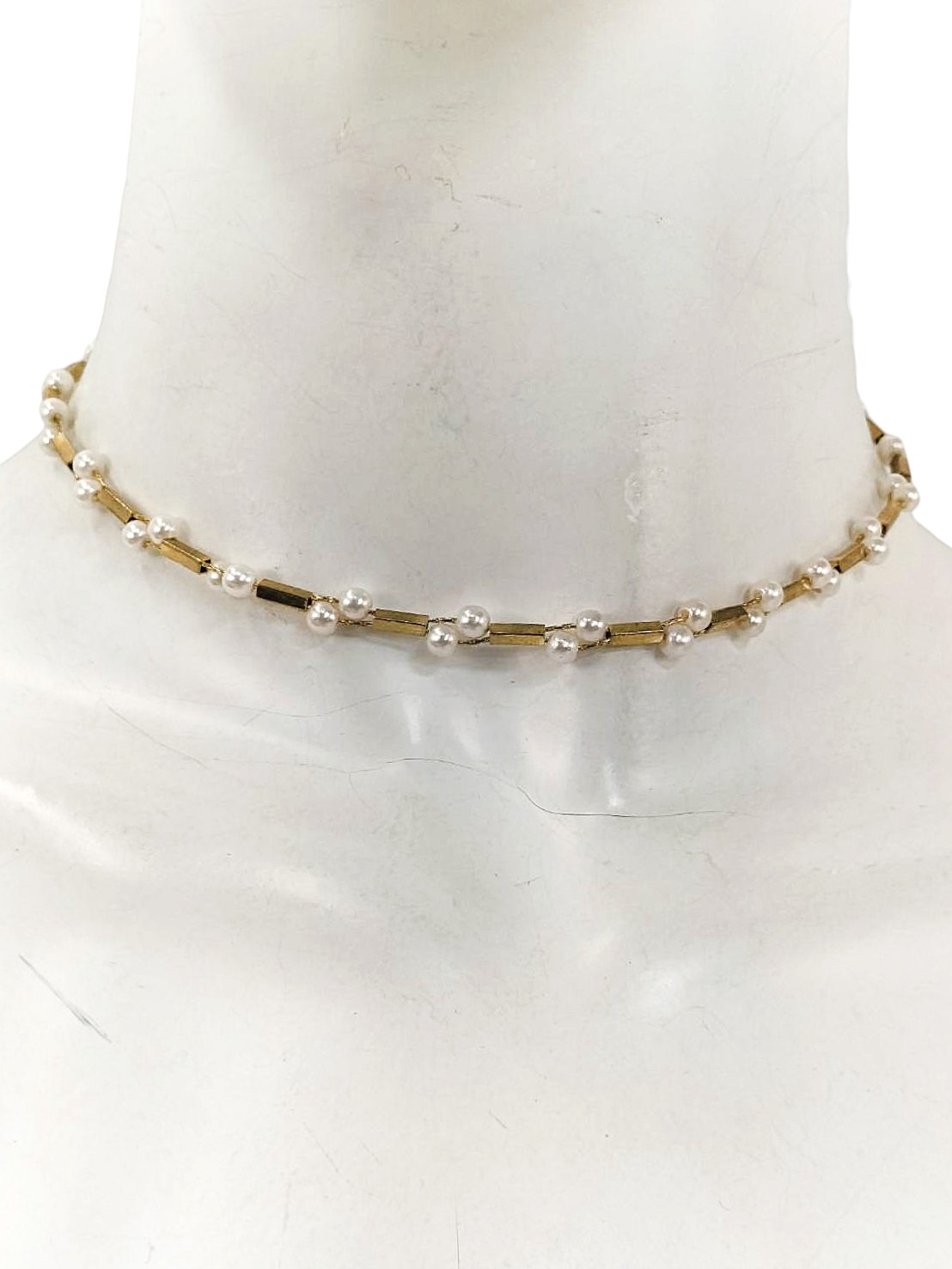 アイテム:パールミックスメタルビーズチョーカー 素材:メタル・樹脂パール 全長:約34㎝ カラー:ゴールド・キスカパール ※AC9999242同型
