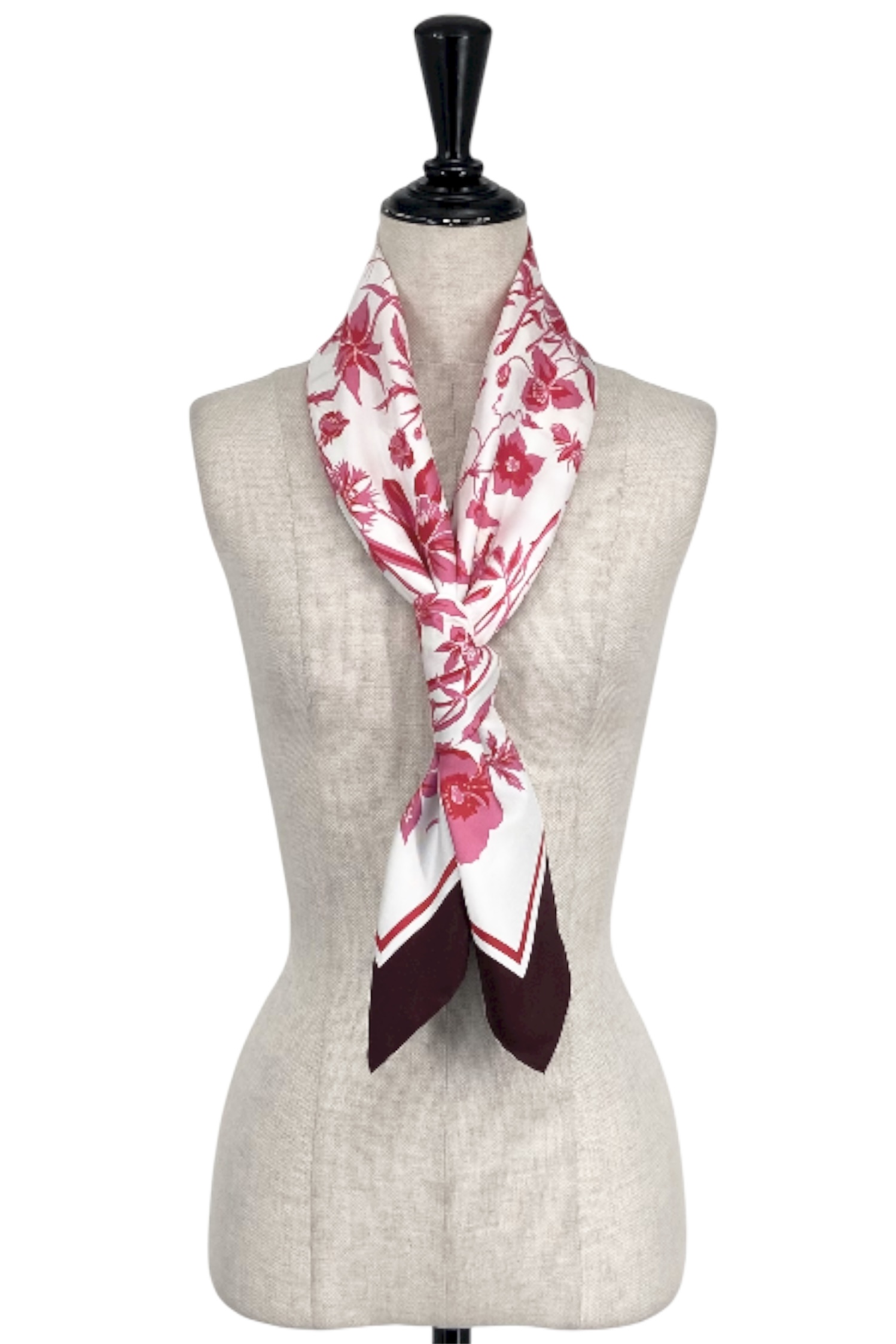 アイテム:大判スカーフ 素材:シルク サイズ:約85×85㎝ カラー:ピンク・レッド・ホワイト・バーガンディー