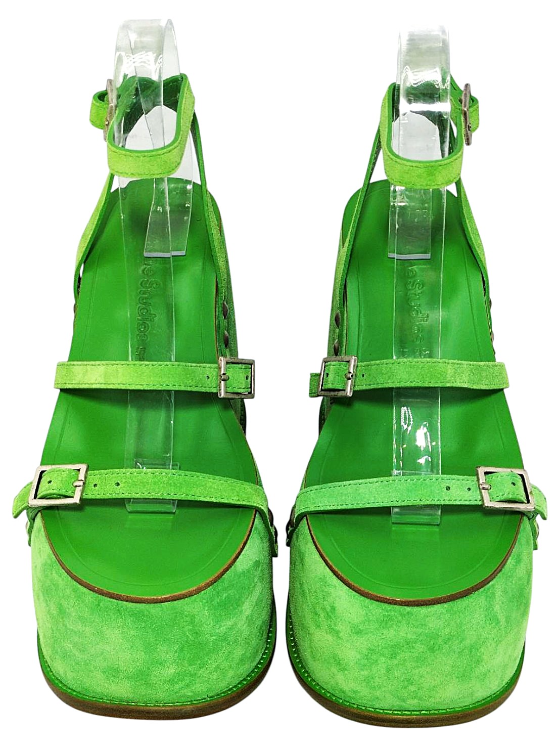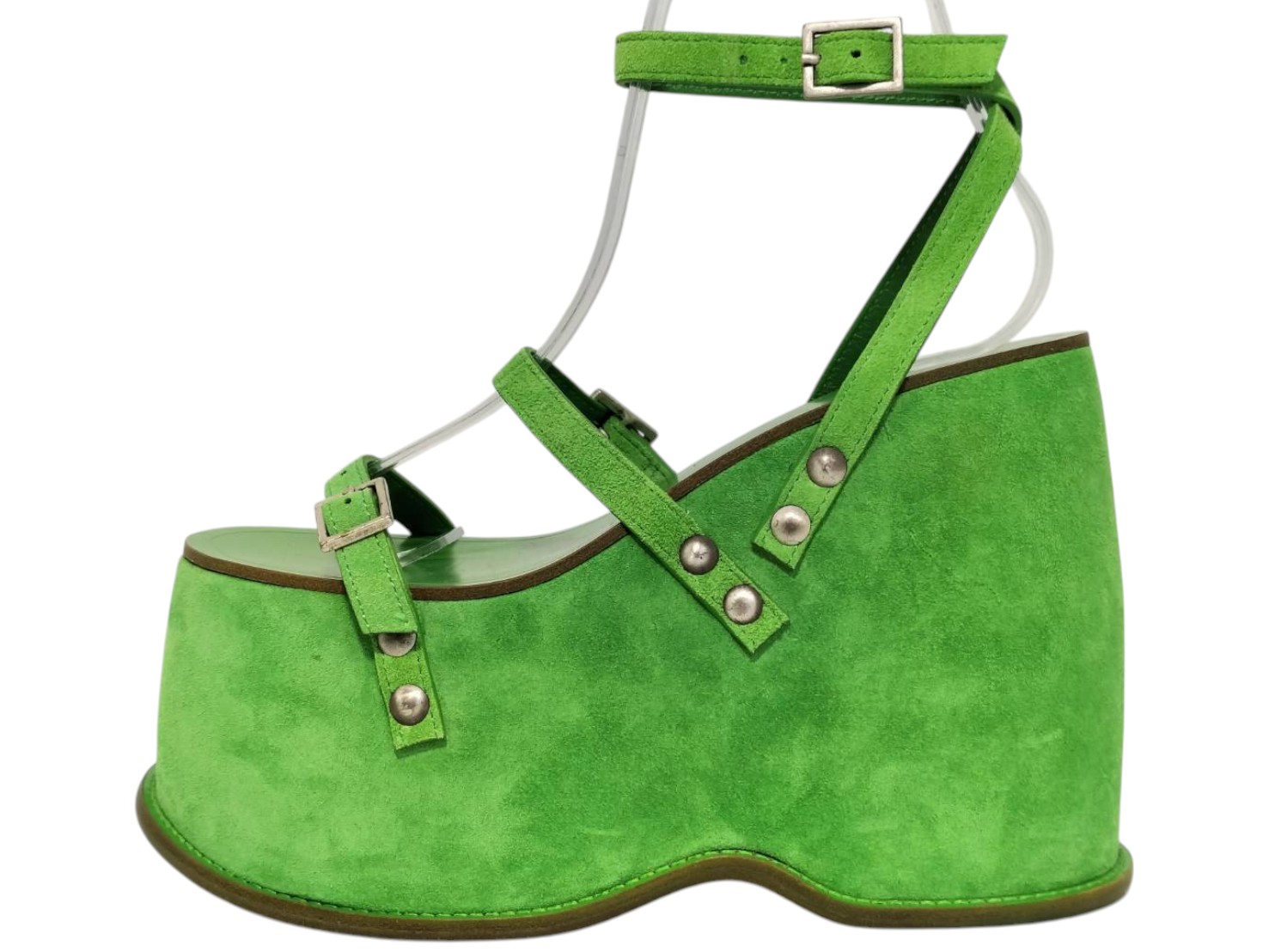 | メモ | アイテ:ベスト付きサンダル(厚底・ウエッジソール) 素材:スエード ヒール:14cm ストーム(前):8.5cm カラー:ライトグリーン ※金具マットシルバー |