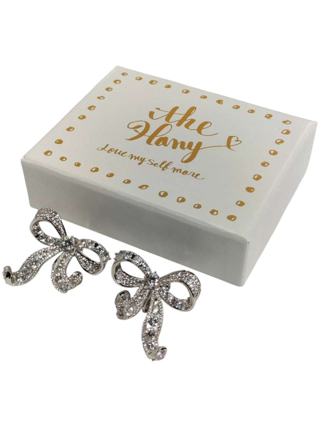 | メモ | アイテム:リボンデザインビジューイヤリング 全長:約3.5㎝ 素材:メタル・ガラス カラー:シルバー・クリスタル |