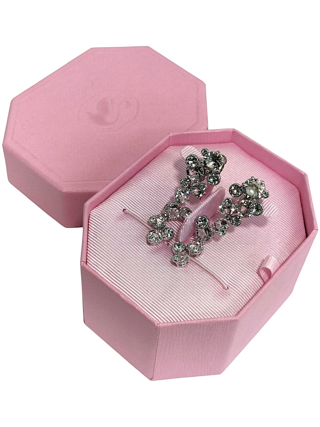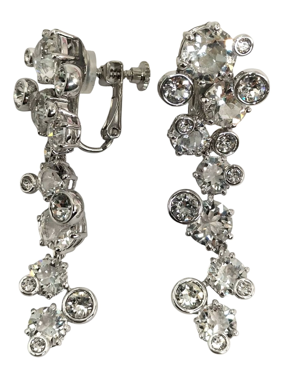 アイテム:ビジューデザインロングイヤリング 全長:約5.2㎝ 素材:メタル・ガラス カラー:シルバー・クリスタル・クリア