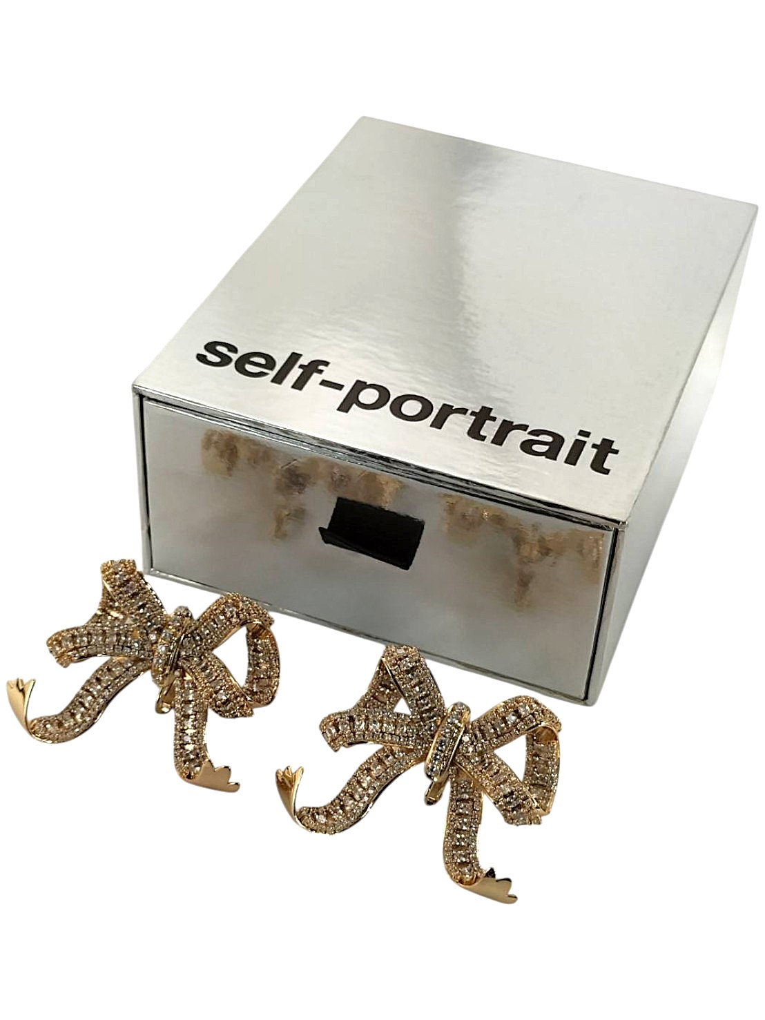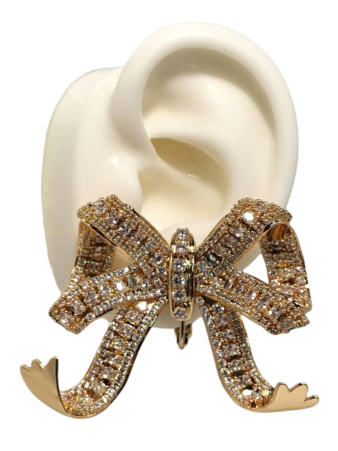 | メモ | アイテム:大振りリボンストーンデザインイヤリング 素材:メタル・ガラス 全長:約4㎝ カラー:ゴールド・クリスタル ※AC9999225同型あり |
