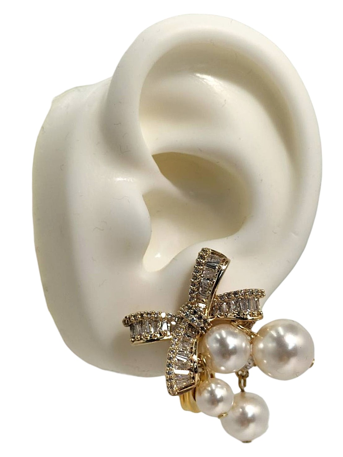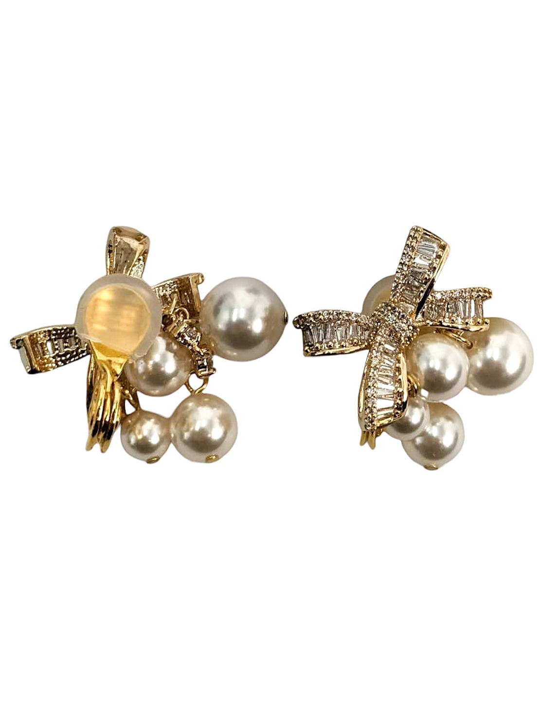 | メモ | アイテム:パール付きリボンデザインイヤリング 素材:メタル・ジルコニア・ガラスパール サイズ:全長約33mm 幅約22mm カラー:ゴールド・クリア・ホワイトパール |