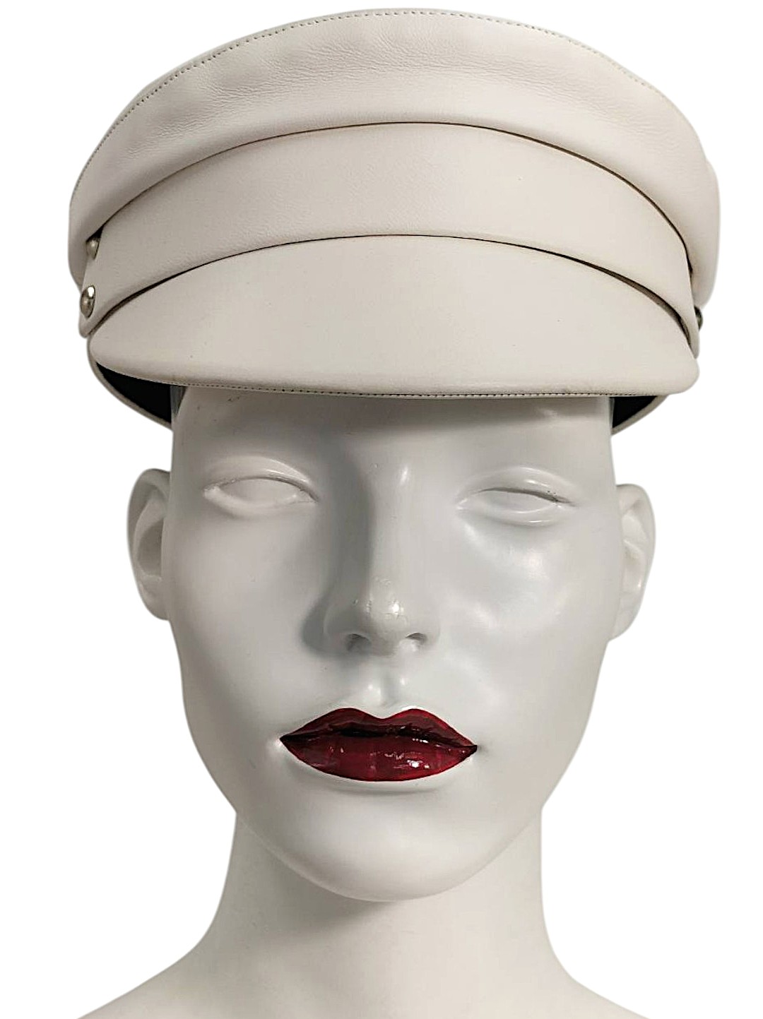 アイテム:ベイカーボーイ ハット・キャスケット 素材:レザー カラー:ホワイト ※金具部分シルバー