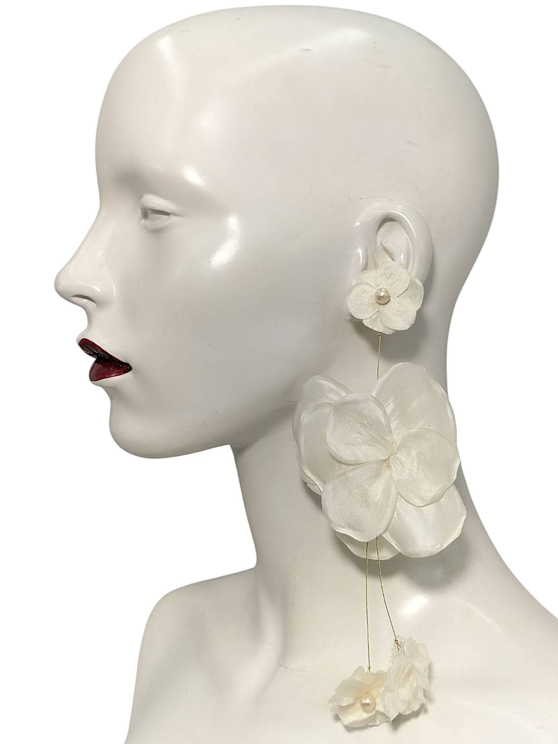 | メモ | アイテム:アシンメトリーデザインフラワーイヤリング 素材:コットンパール・サテン・オーガンジー カラー:アイボリー 全長:約19㎝ |