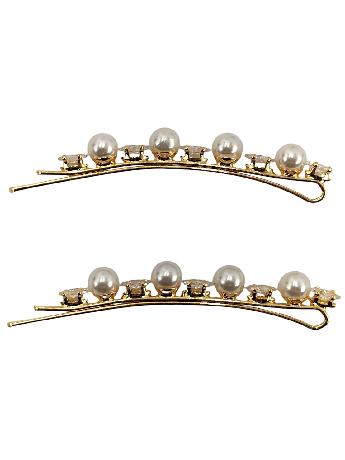 アイテム:パールミックスストーンヘアピン2ヶセット 素材:ガラスパール・ジルコニア・メタル カラー:ゴールド・クリア・ホワイト 全長:約5.5㎝(装飾部分)