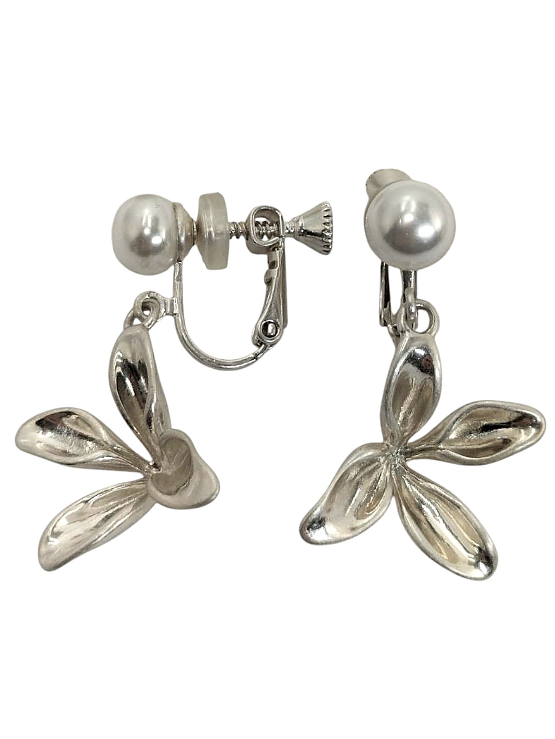 アイテム:パール付きメタルフラワーイヤリング 素材:メタル・樹脂パール 全長:約3.5㎝