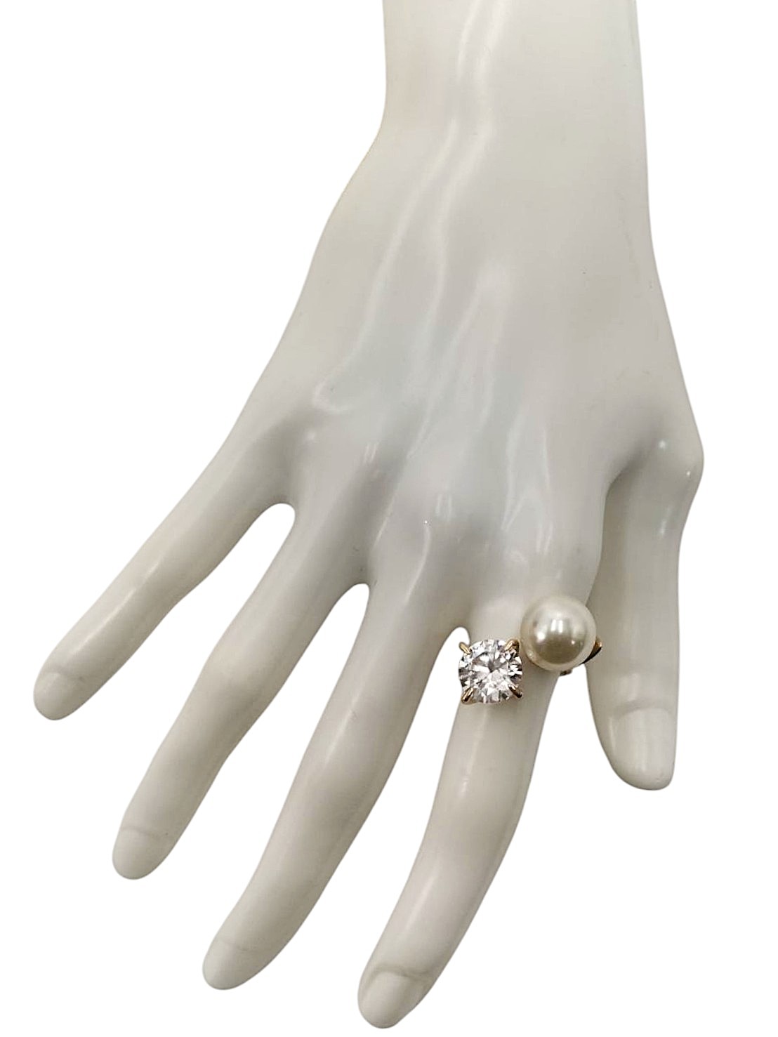 アイテム:ビッグビジュー&パールデザインリング 素材:メタル・エポストーン・樹脂パール サイズ:51(11号・16.3mm・US5 3/4・UK-L) 高さ:約1.3㎝ カラー:ゴールド・クリア・キスカパール