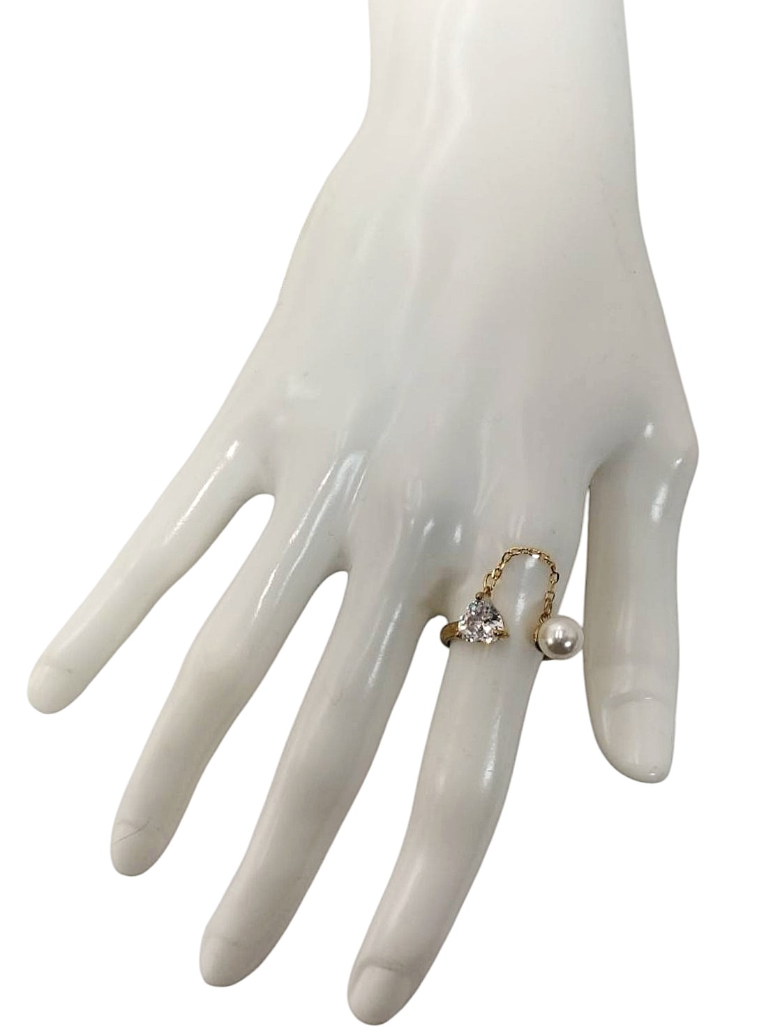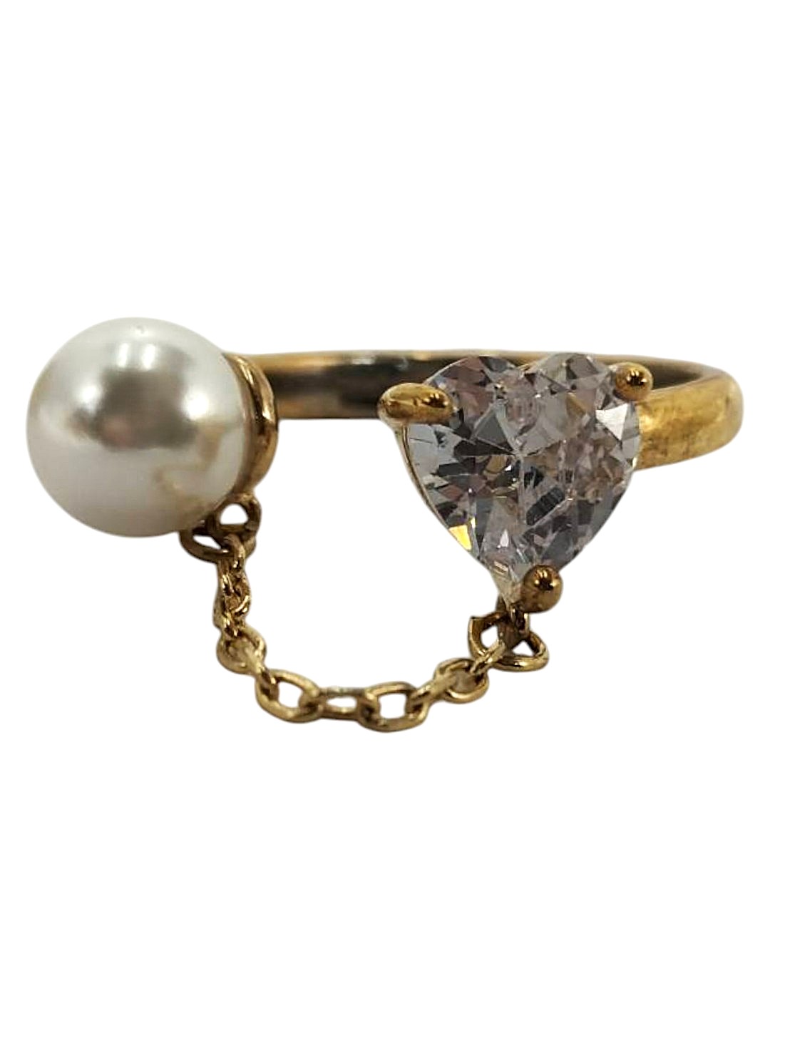アイテム:ハートビジュー&パールデザインリング 素材:メタル・ジルコニア・樹脂パール サイズ:51(11号・16.3mm・US5 3/4・UK-L) 高さ:約2㎝ カラー:ゴールド・クリア・キスカパール