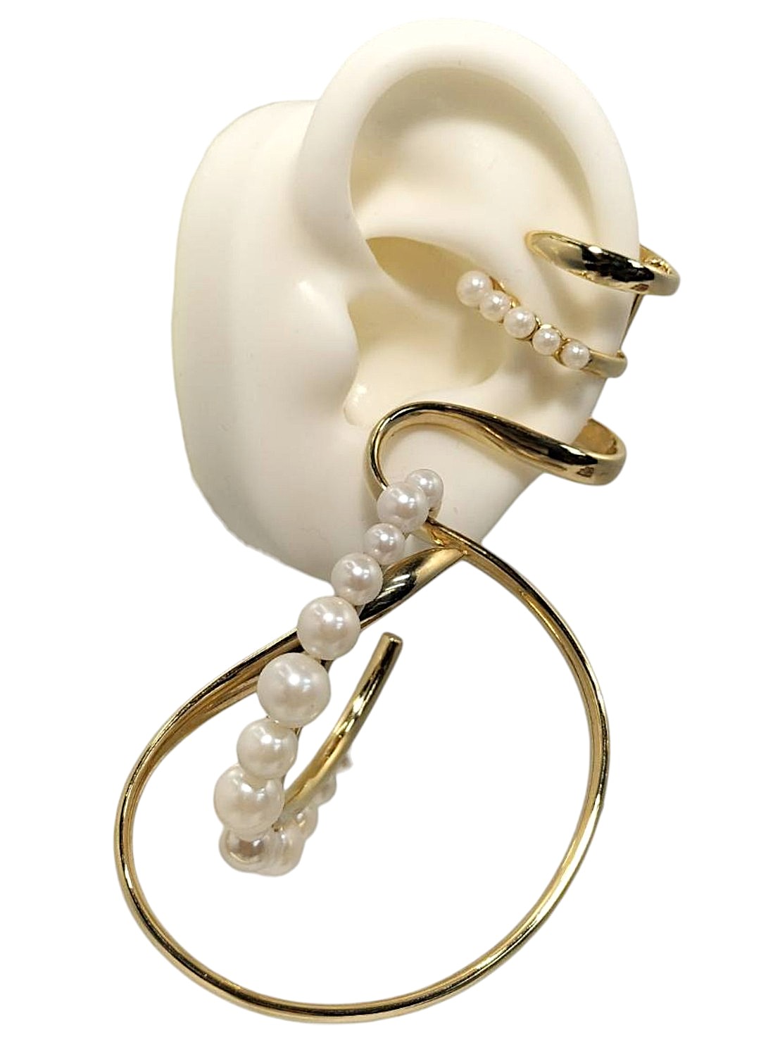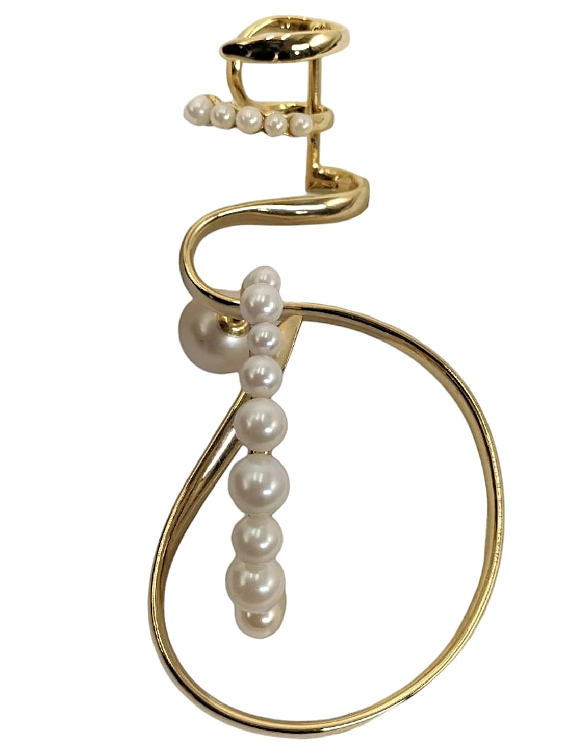 アイテム:イヤーカフ付き片耳ピアス 素材:メタル・ガラスパール 全長:約9.5㎝ カラー:ゴールド・ホワイト