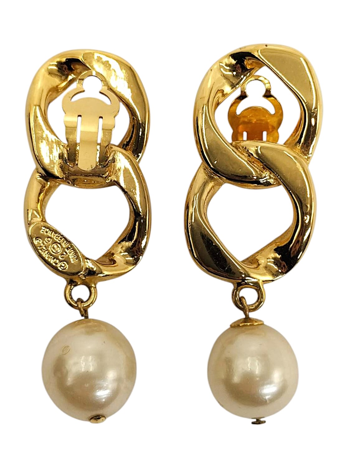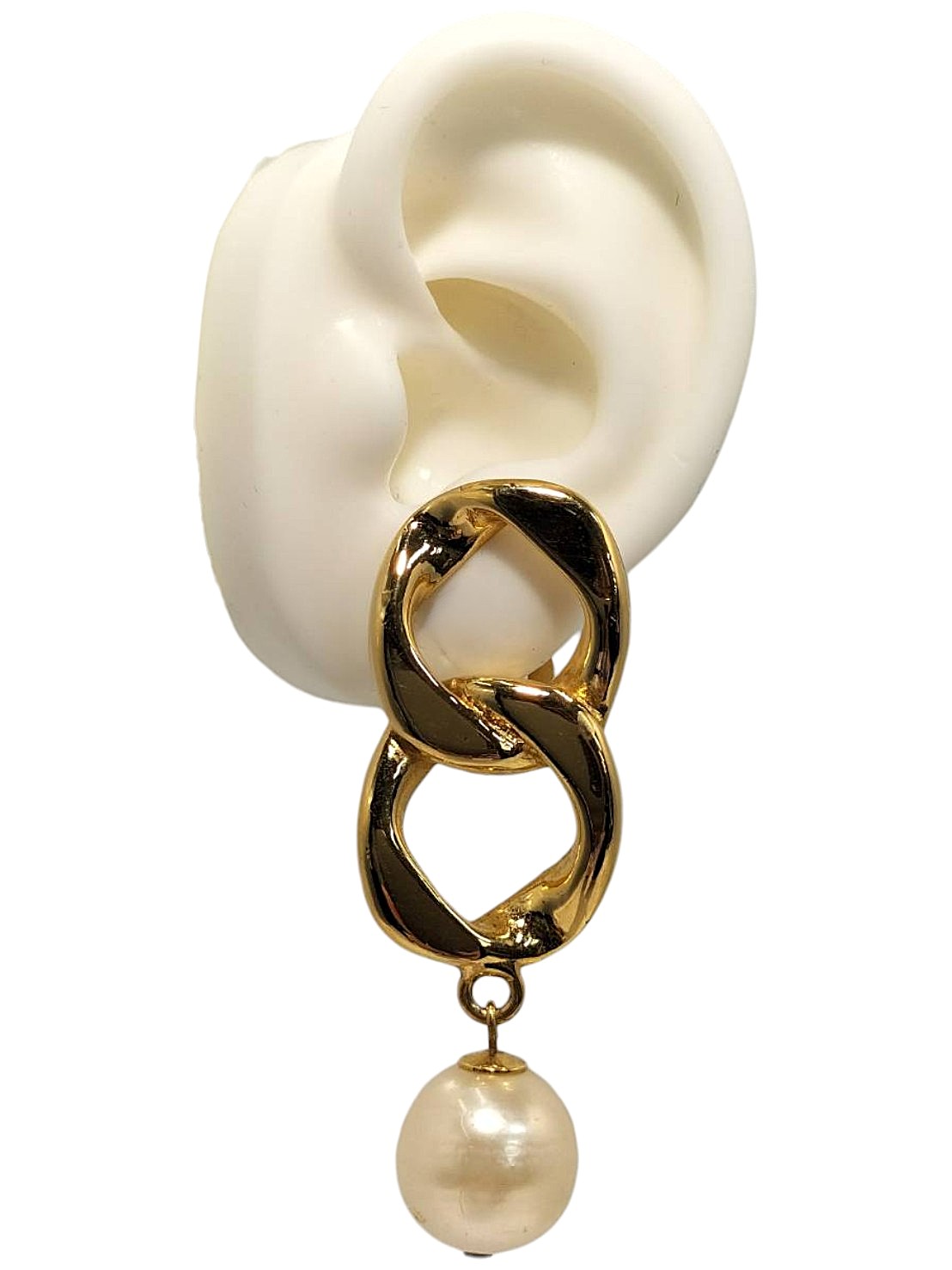 アイテム:淡水パール付きチェーンデザインイヤリング 素材:メタル・淡水パール 全長:約6.5㎝ カラー:ゴールド・アイボリー