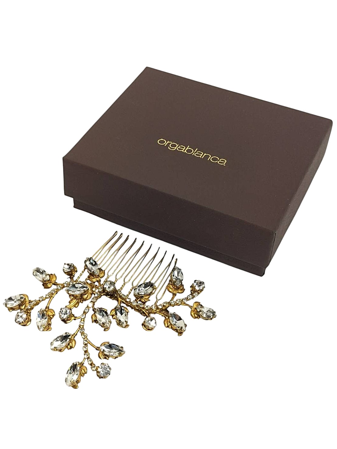 | メモ | アイテム:リーフモチーフコーム・ヘッドアクセ 素材:真鍮メタル・ガラス カラー:真鍮ゴールド・クリスタル |
