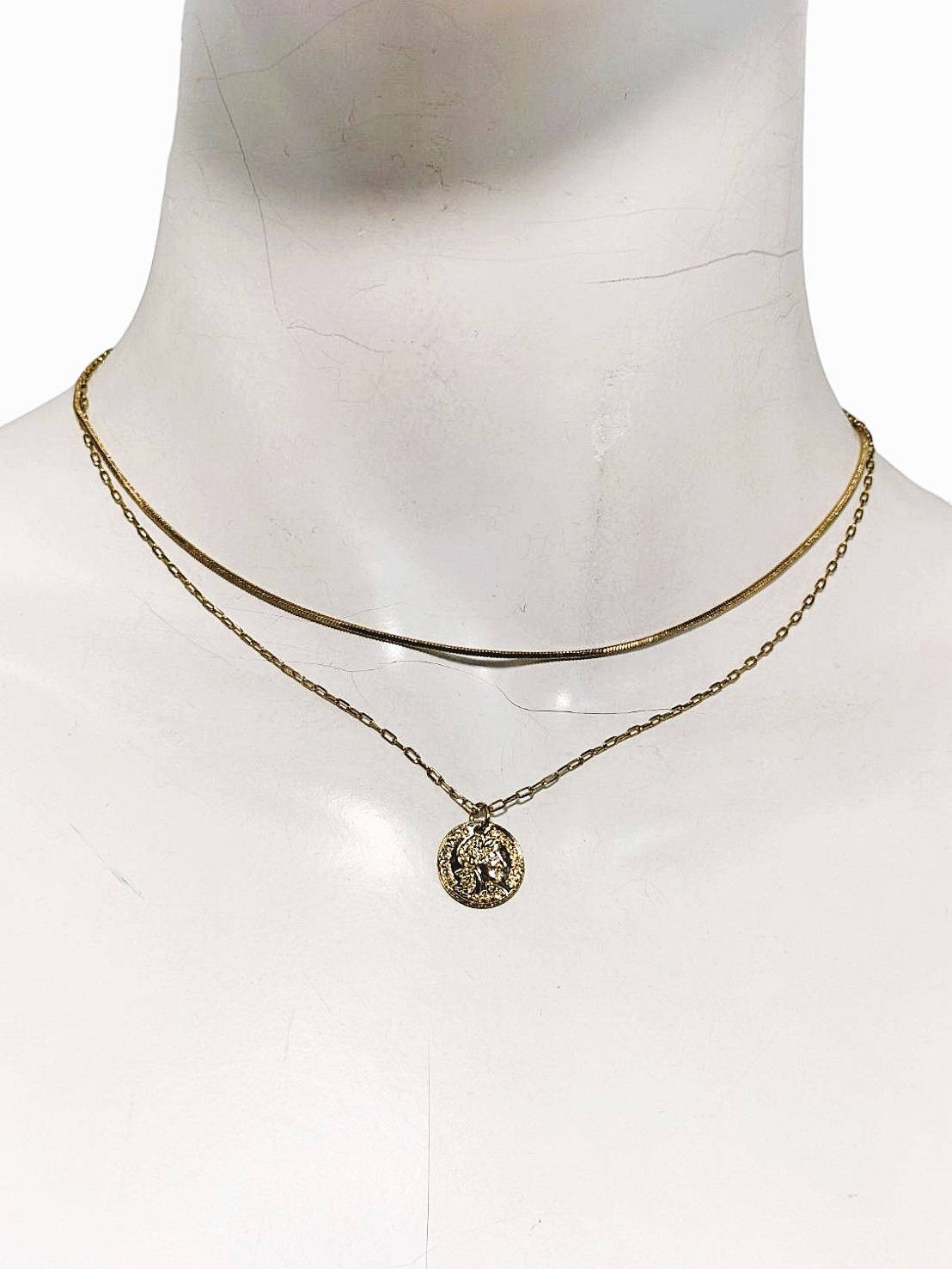 アイテム:コイン付き2連ネックレス 素材:メタル 全長:約10㎝/約11㎝ カラー:ゴールド