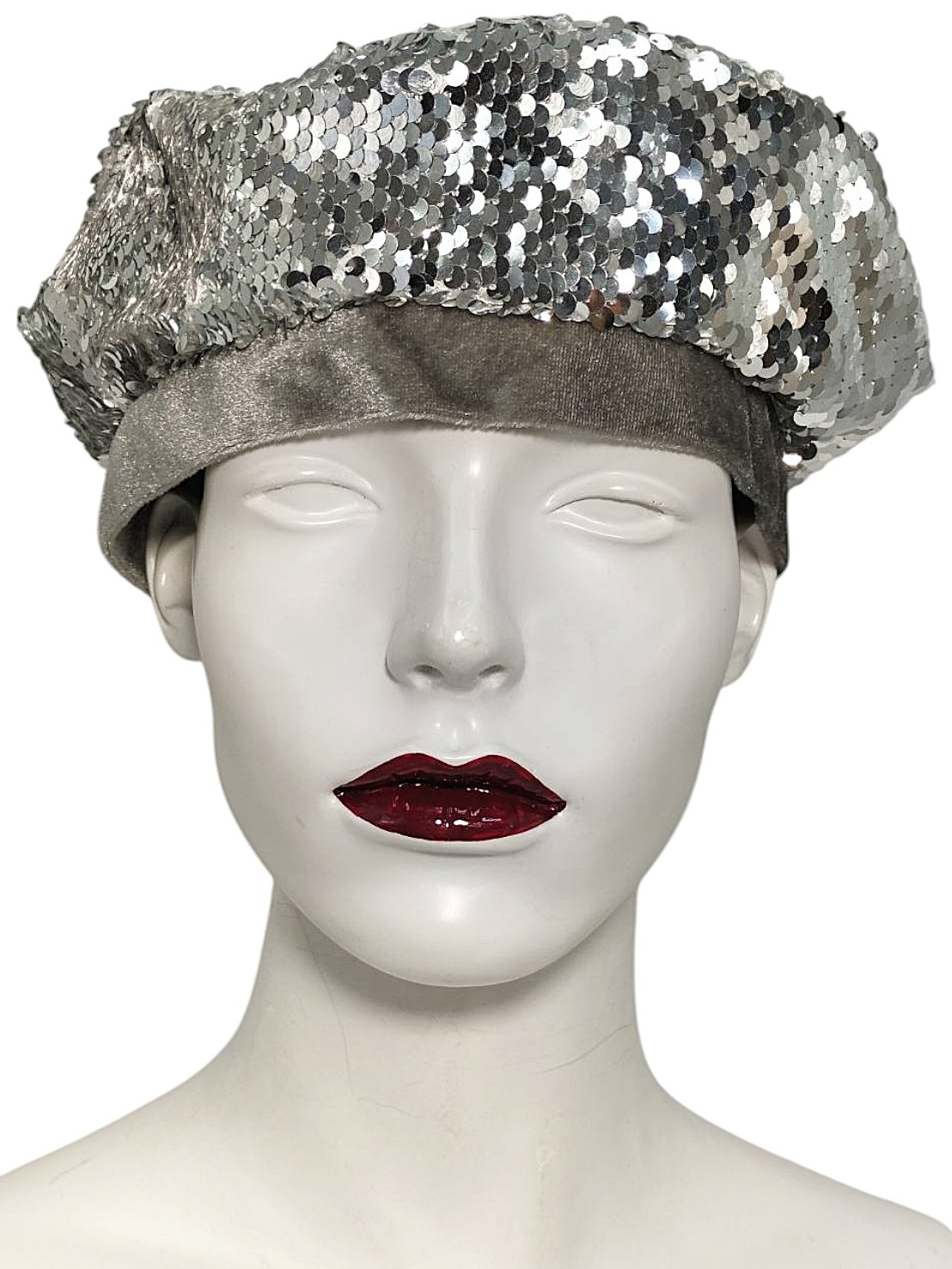 アイテム:ベレー帽 素材:スパンコール・ベロア カラー:シルバー