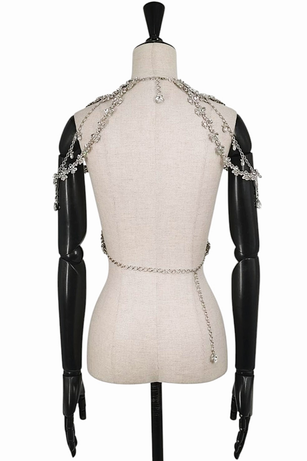 アイテム:ビジュー付きボディーアクセサリー・ボディーチェーン・チェーンハーネス 素材:メタル・ガラス カラー:シルバー・クリスタル