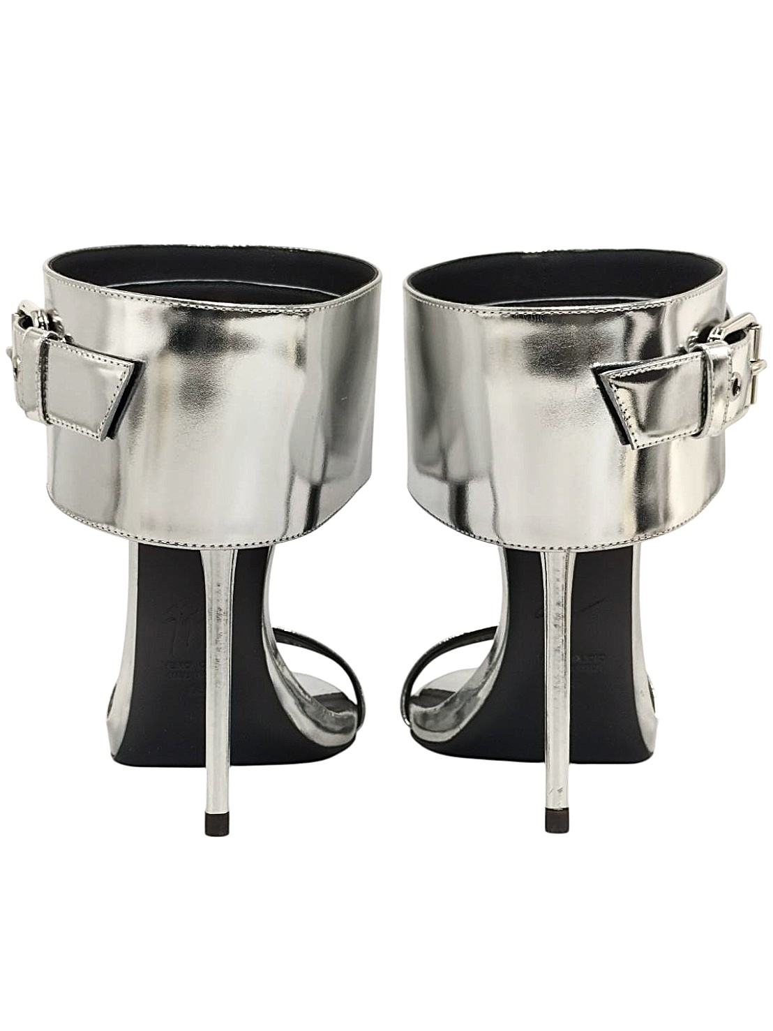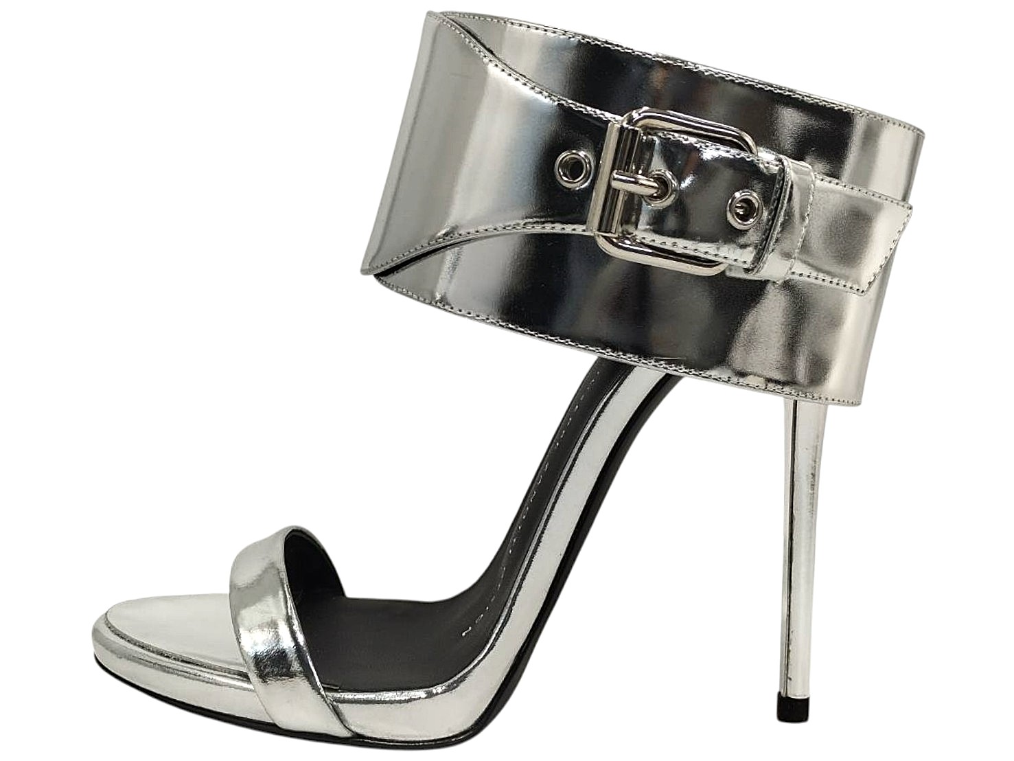 | メモ | アイテ:デザインメタリックサンダル 素材:レザー・メタリックレザー ヒール:約12㎝ カラー:シルバー ※金具シルバー |