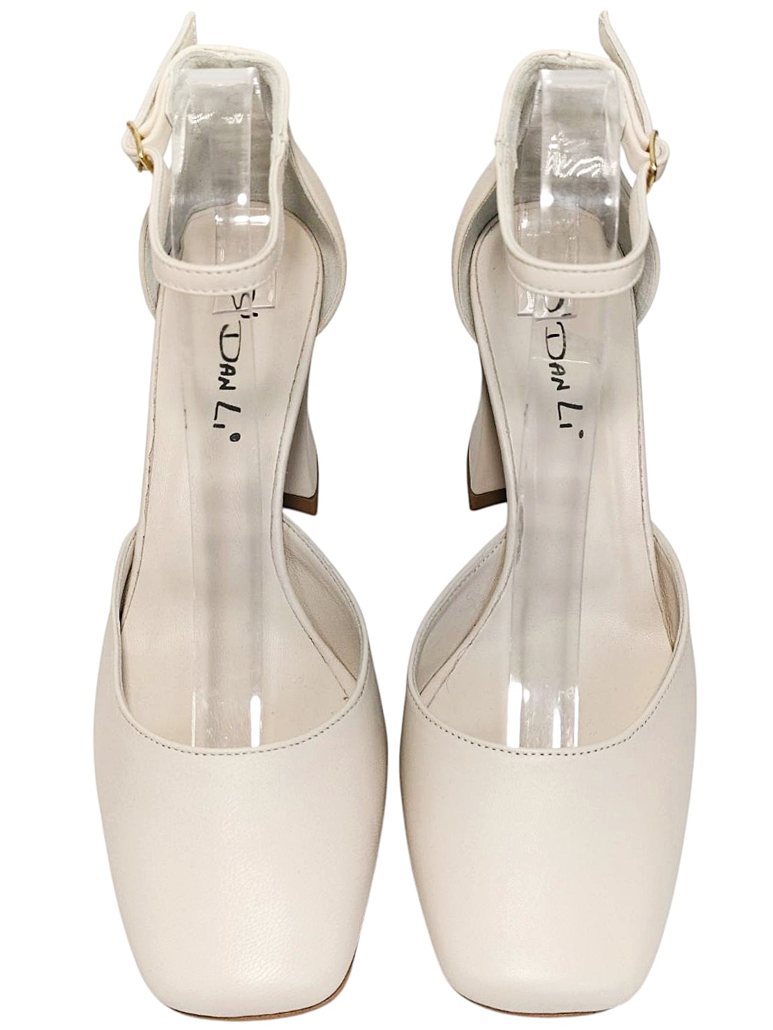 アイテ:アンクルベルト付きストラップシューズ 素材:レザー ヒール:約8.5㎝ カラー:アイボリー系 ※金具ゴールド