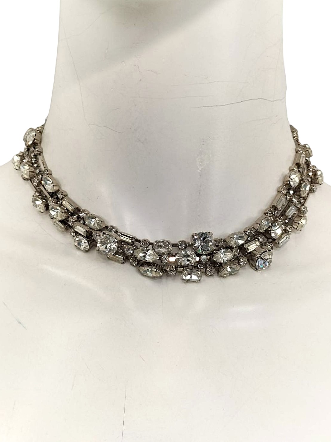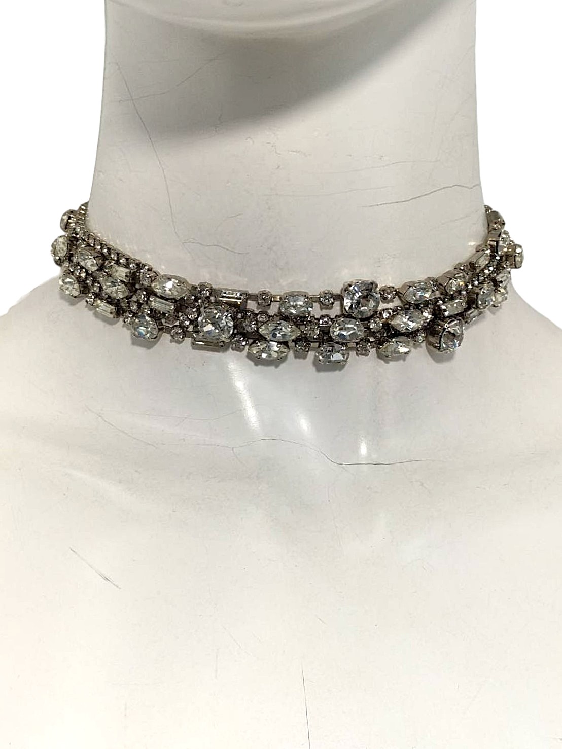 アイテム:ビジューチョーカー 素材:メタル・ガラス カラー:シルバー・クリスタル 全長:約29㎝