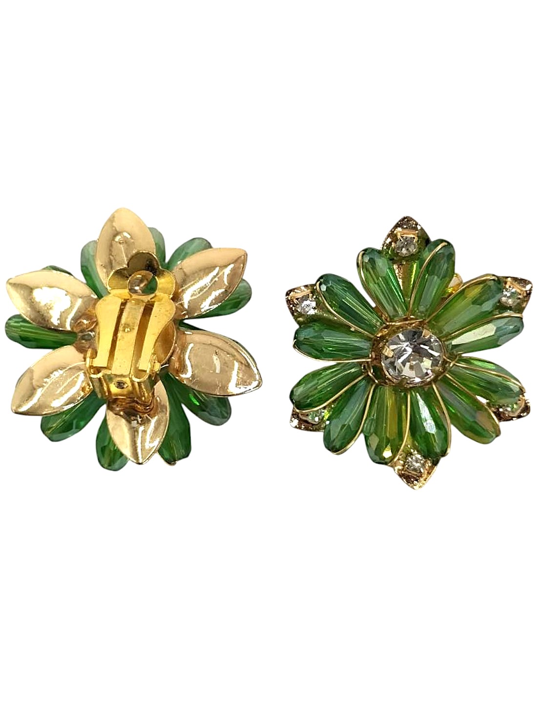 アイテム:フラワービーズデザインイヤリング 素材:メタル・ガラス 全長:約2.8㎝ カラー:ゴールド・クリアオリーブグリーン・クリスタル