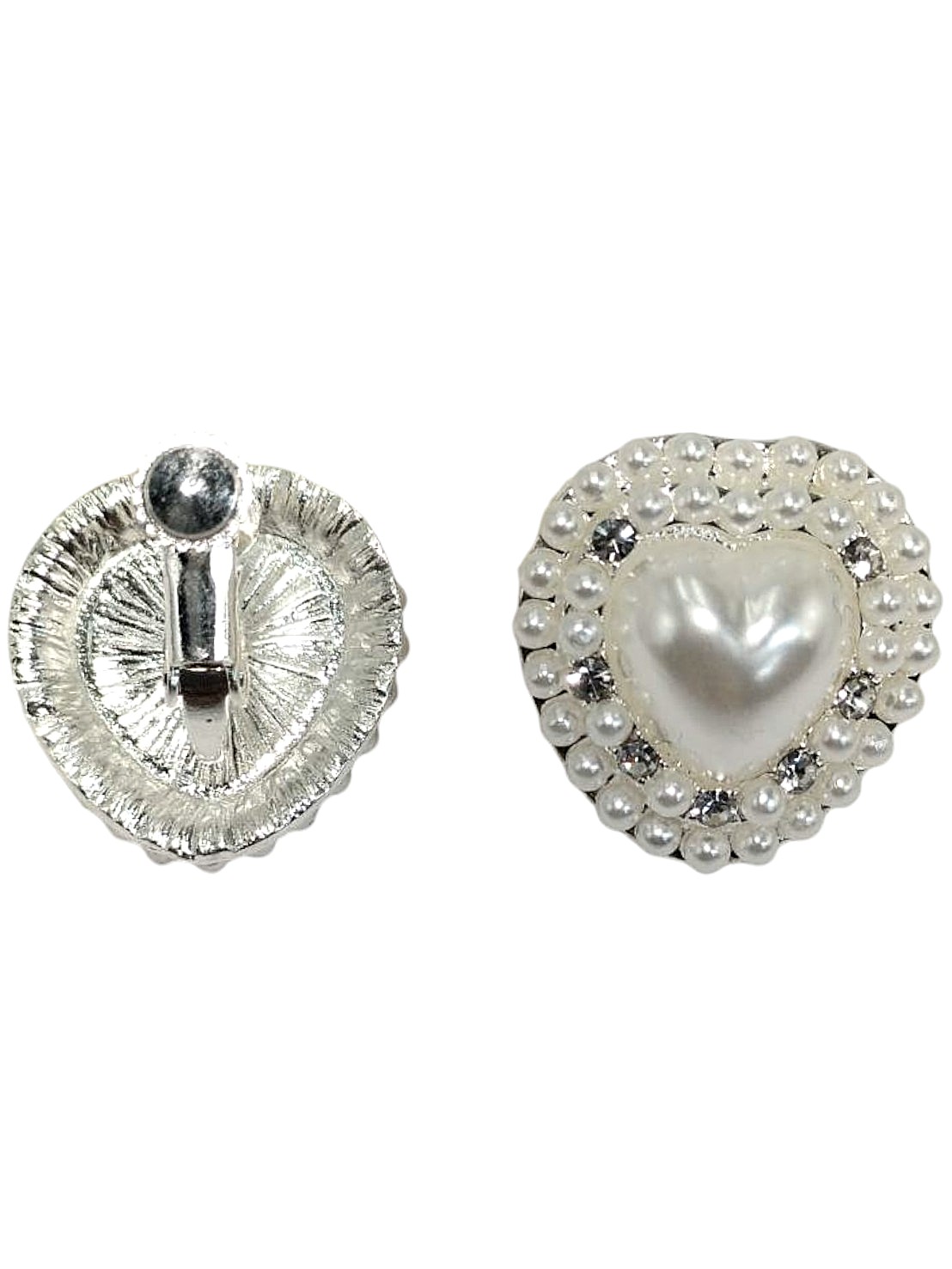 アイテム:ハートパールデザインイヤリング 素材:メタル・樹脂パール 全長:約1.8㎝ カラー:シルバー・ホワイトパール・クリスタル