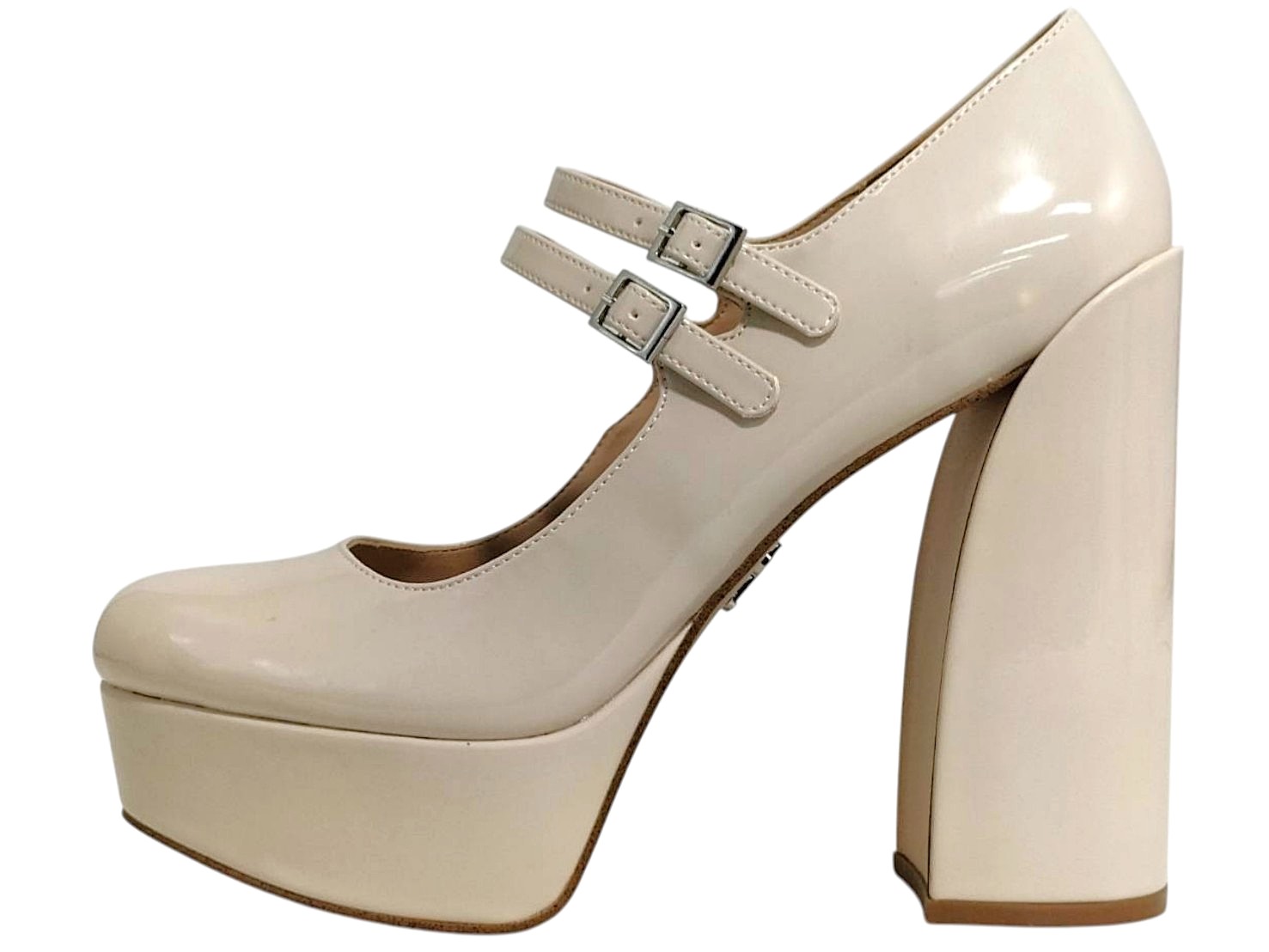 | メモ | アイテム:2連ストラップシューズ(プラットフォームあり) 素材:エナメル ヒール:約14.5cm ストーム(前):約4cm カラー:アイボリー・ライトベージュ系 |