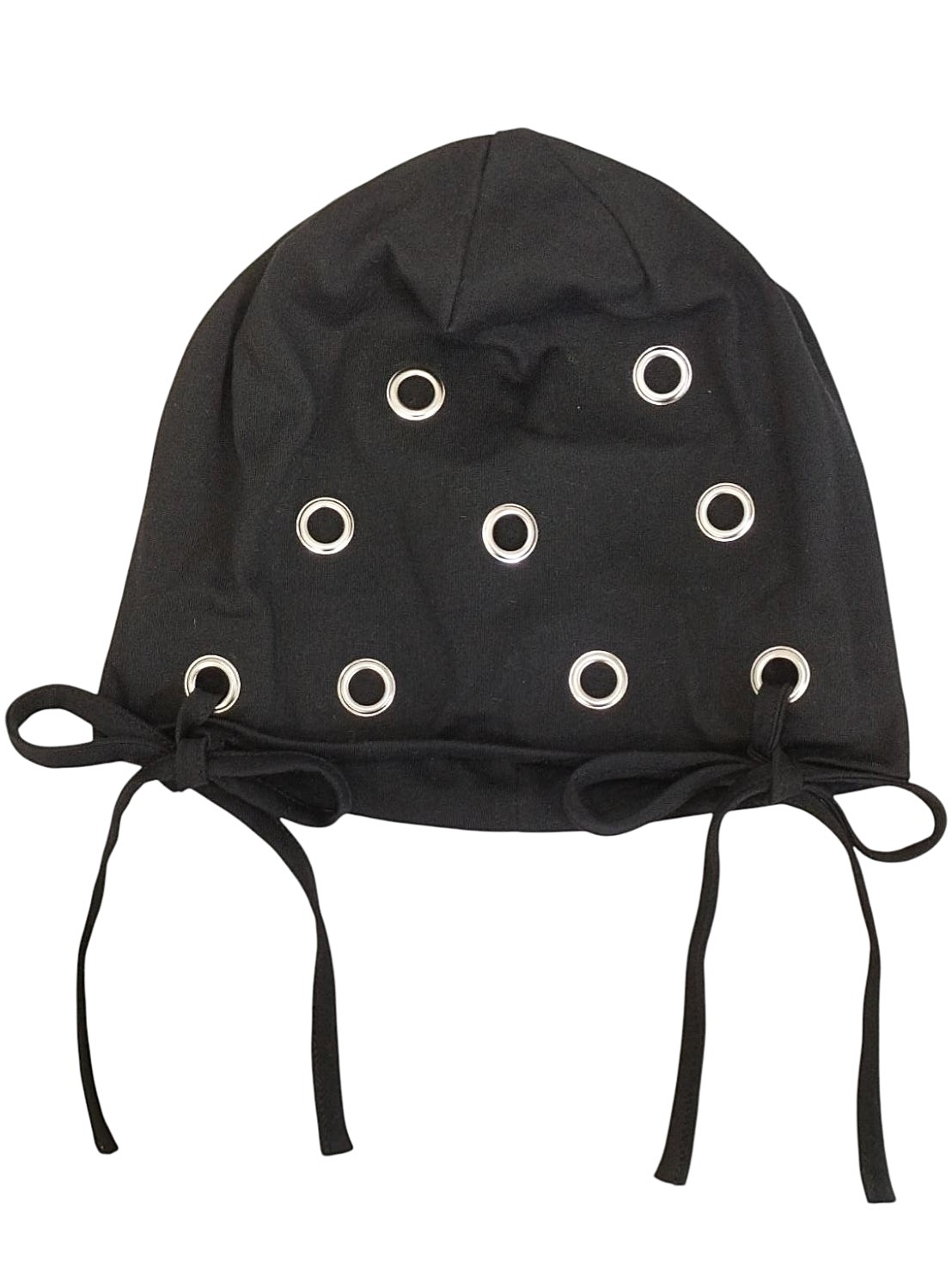 アイテム:ハトメリボンビーニー カラー:ブラック・シルバー 素材:コットン・メタル