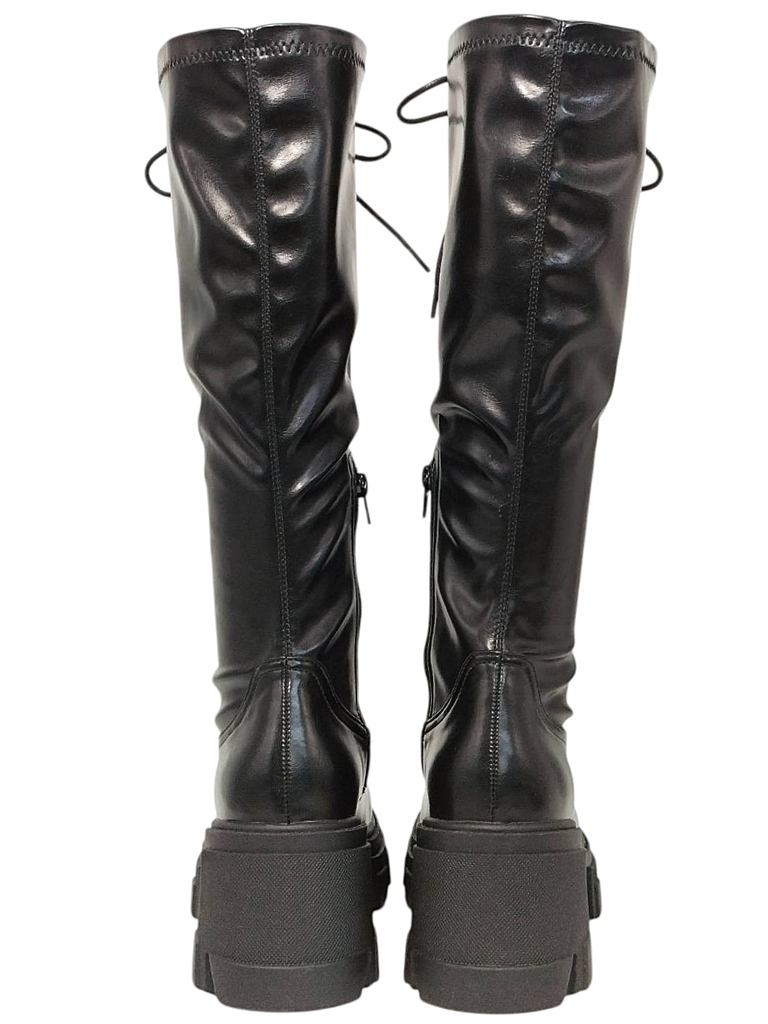 | メモ | アイテム:レースアップブーツ(プラットフォームあり) 素材:フェイクレザー サイズ:L(24~24.5cm) ヒール:約8.3㎝ ストーム(前):約4cm 全長:約46㎝ カラー:ブラック |