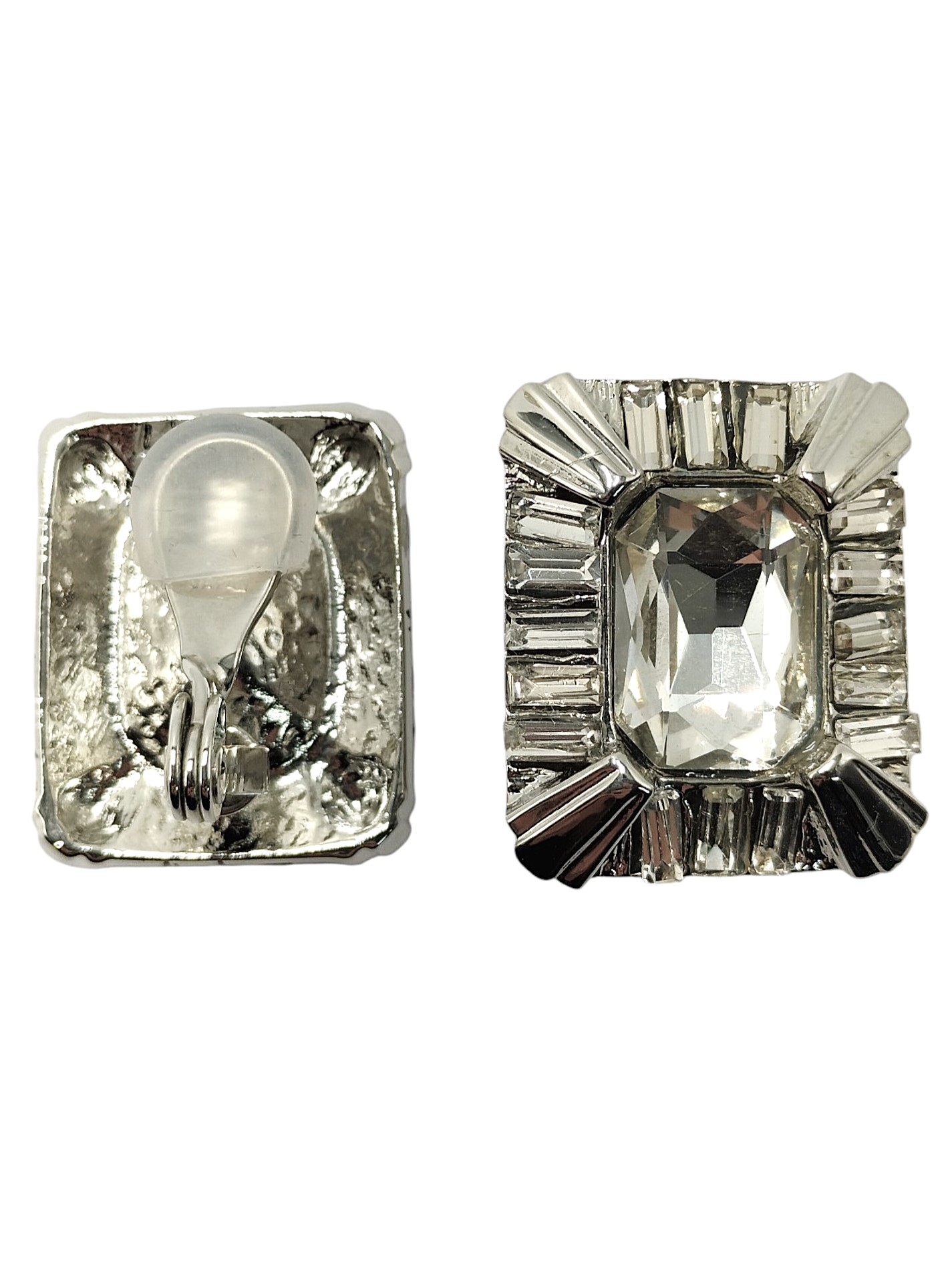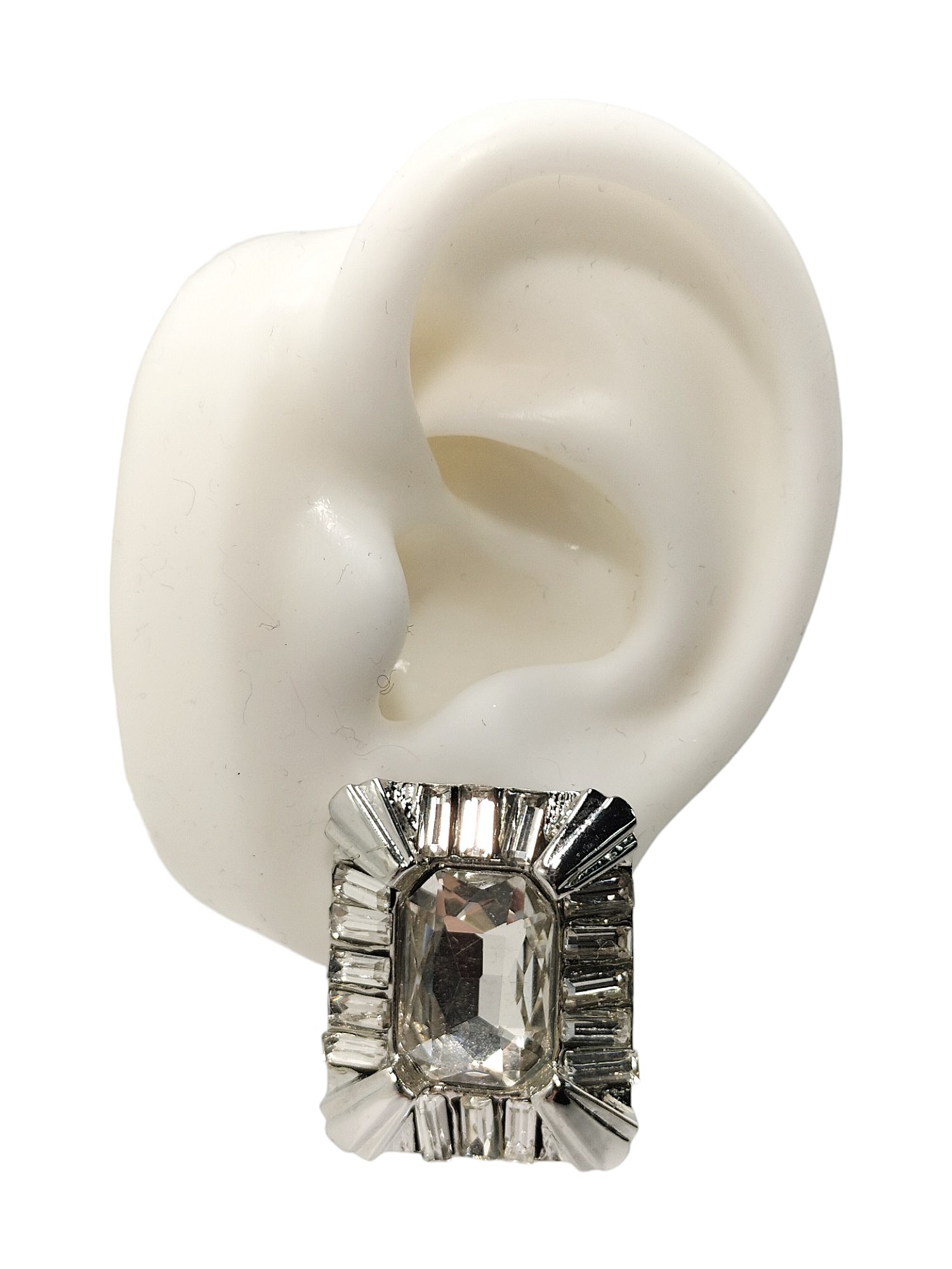 アイテム:スクエア型ビジューイヤリング 素材:メタル・ガラス カラー:クリスタル・シルバー 全長:2.5㎝ ※AC9998476同型