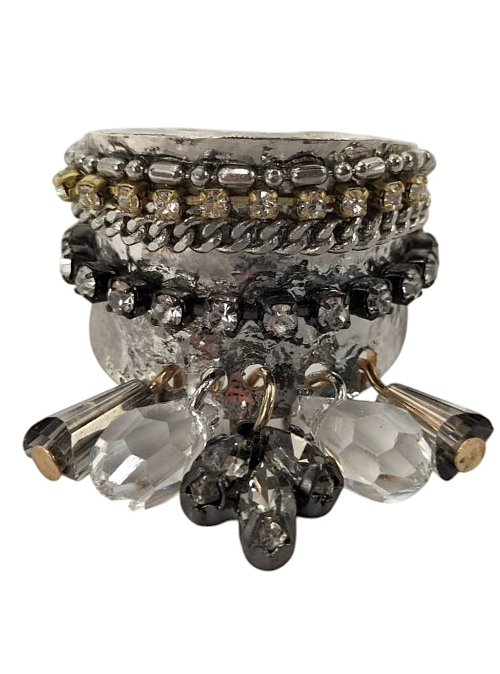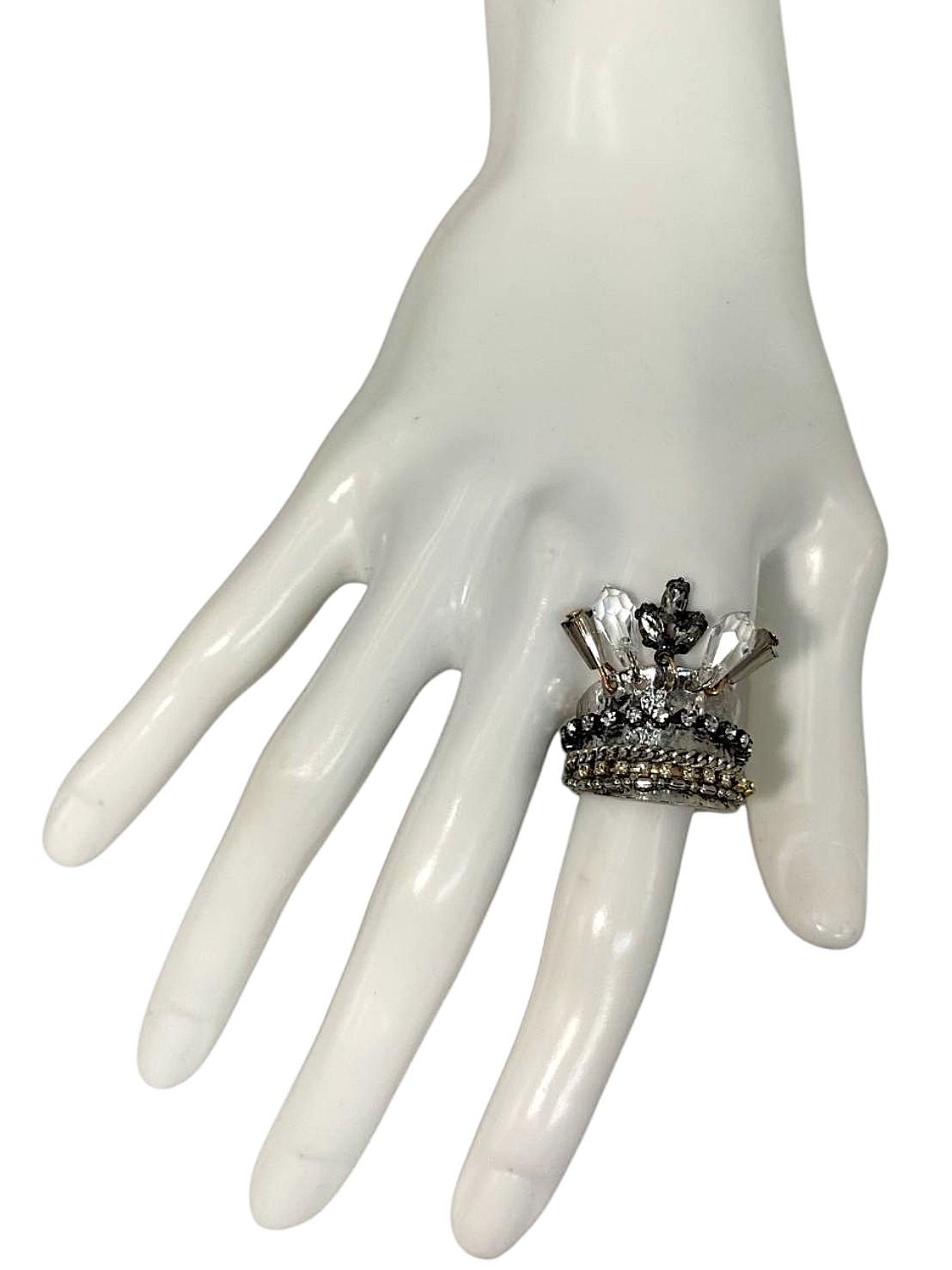 アイテム:クリスタルフリンジ付きリング サイズ:55(15号・17.5 mm・US7 1/4・UKL - O - P) 全長:約3㎝ 素材:メタル・ガラス カラー:アンティークシルバー・グレージュ・クリスタル・ガンメタ・ゴールド