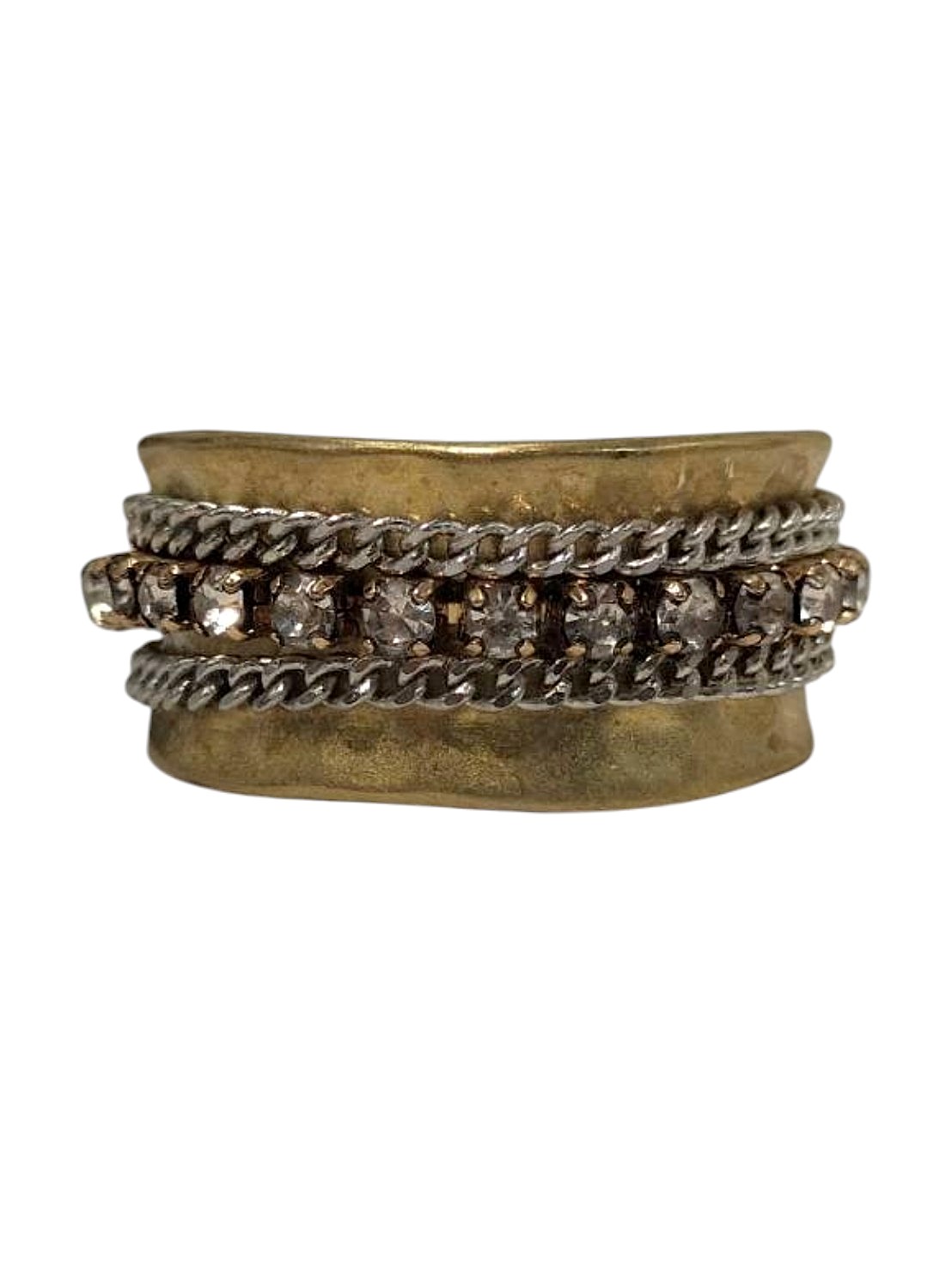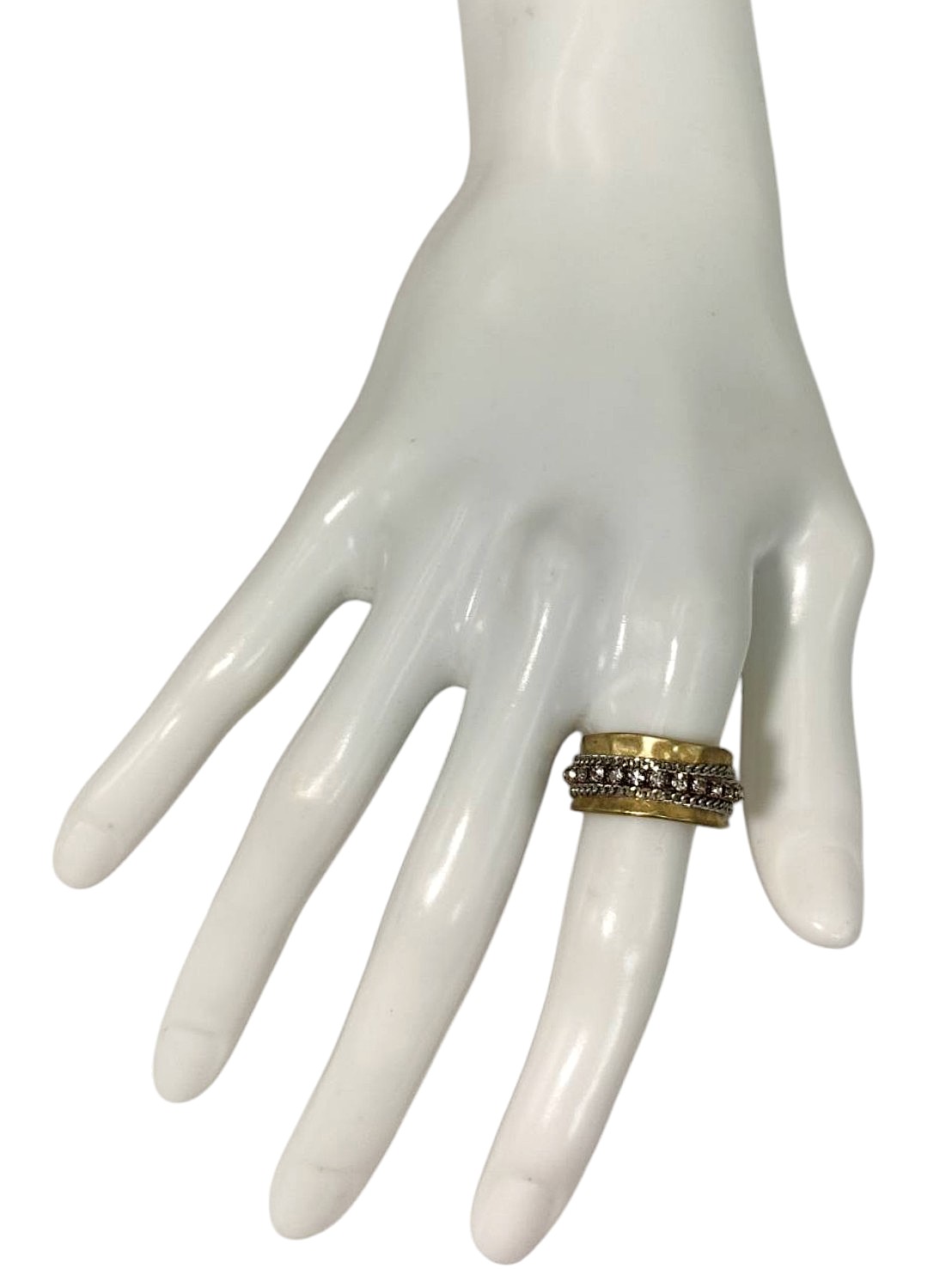 アイテム:デザインリング サイズ:53(13号・17 mm・US6 1/2・UKL -M - N) 全長:約1㎝ 素材:メタル カラー:マットゴールド・アンティークシルバー・クリスタル