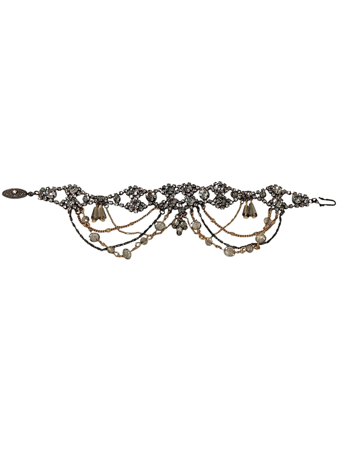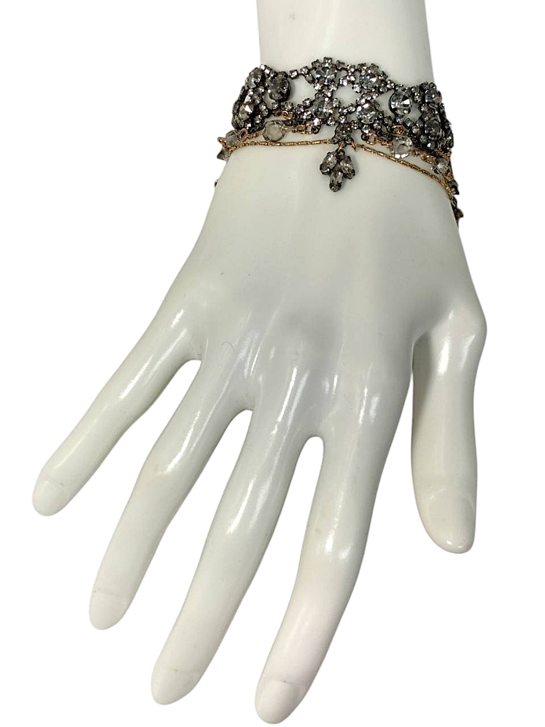 アイテム:ダイヤレーンデザインブレスレット 素材:メタル・アクリルストーン カラー:アンティークゴールド・アンティークシルバー・クリア