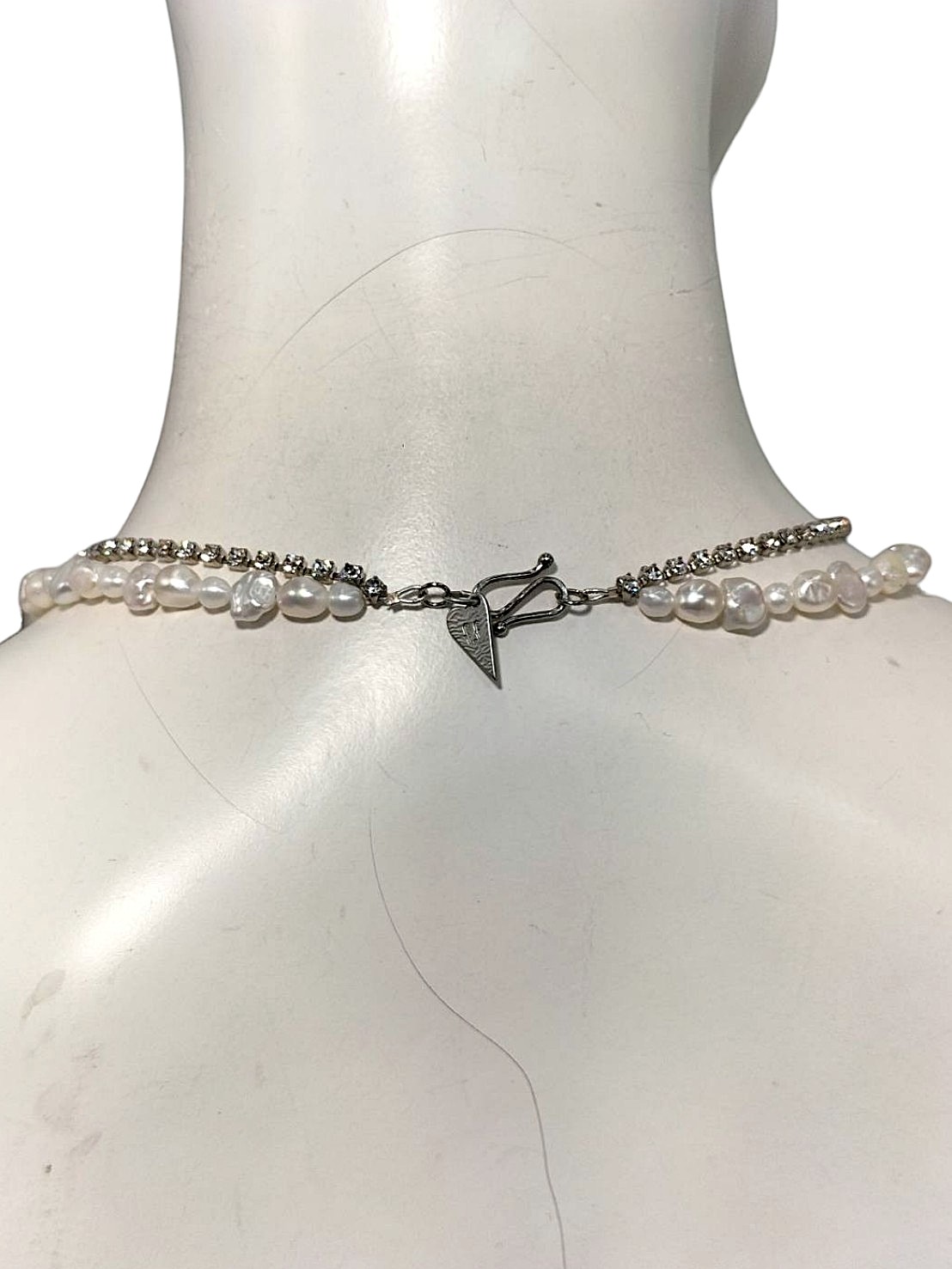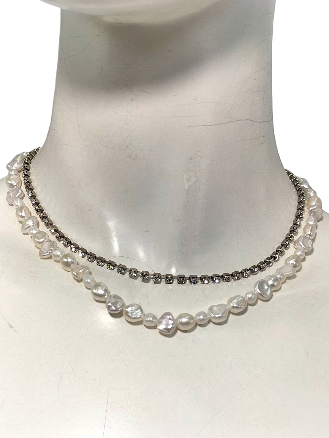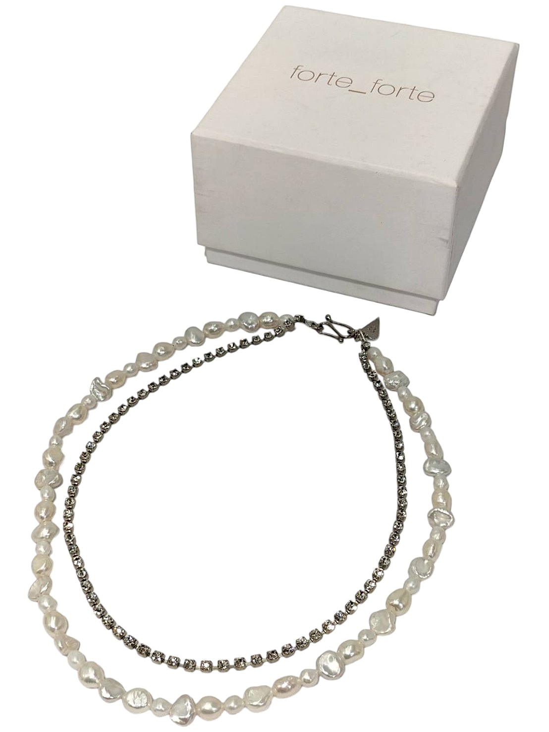 | メモ | アイテム:淡水パール&ダイヤレーンネックレス 素材:メタル・ガラス・淡水パール カラー:シルバー・クリスタル・ホワイトパール 全長:約37㎝ |