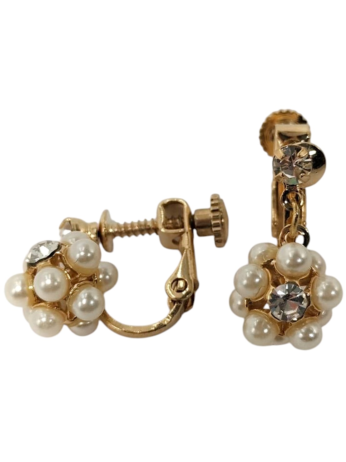 アイテム:パールデザインイヤリング 素材:メタル・樹脂パール・ガラス 全長:約1.8㎝ カラー:ゴールド・クリスタル・ホワイトパール