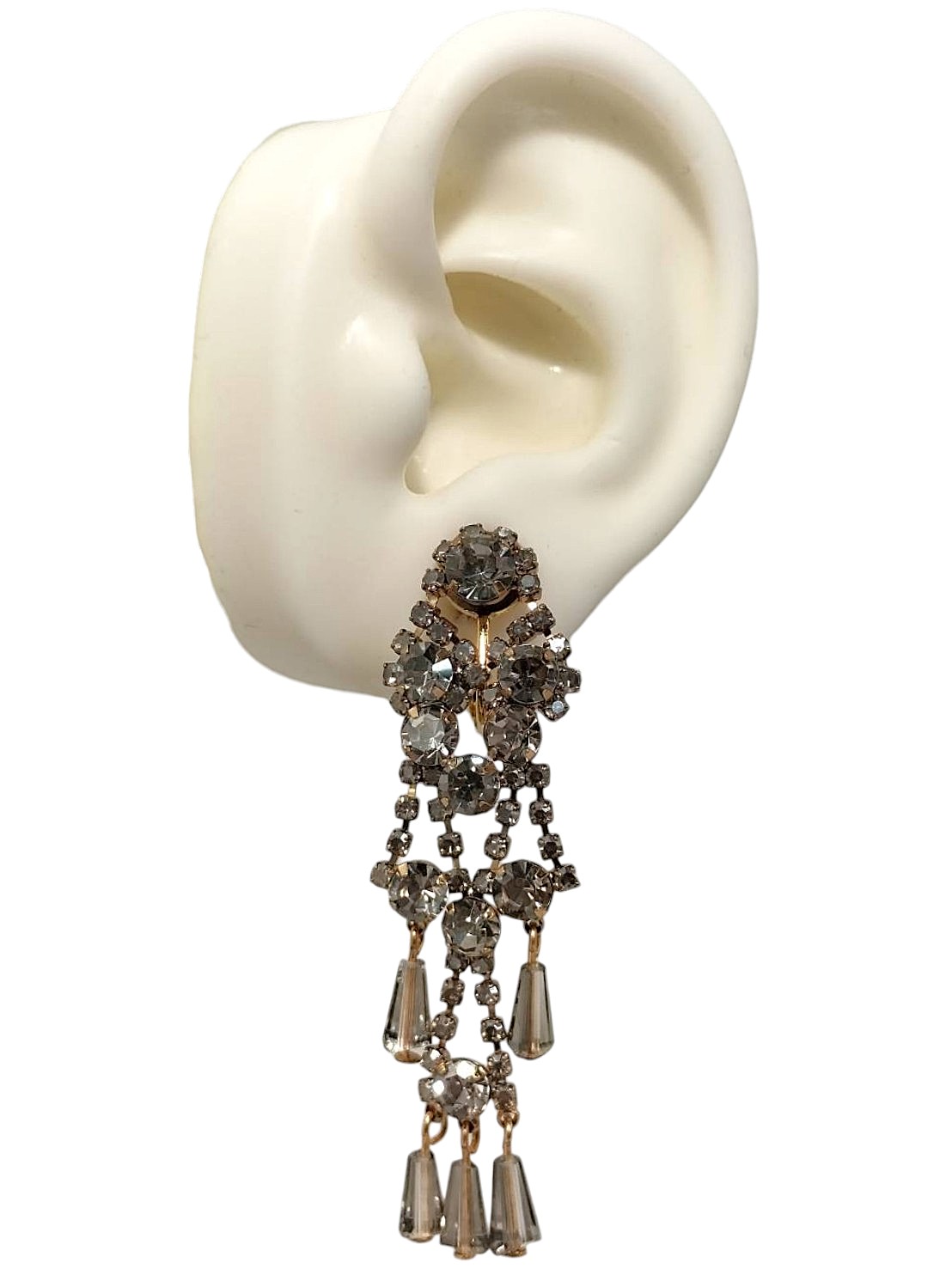 アイテム:クリスタルフリンジ付きビジューイヤリング 全長:約6.2㎝ 素材:メタル・ガラス カラー:アンティークゴールド・グレージ ※AC9999565同型